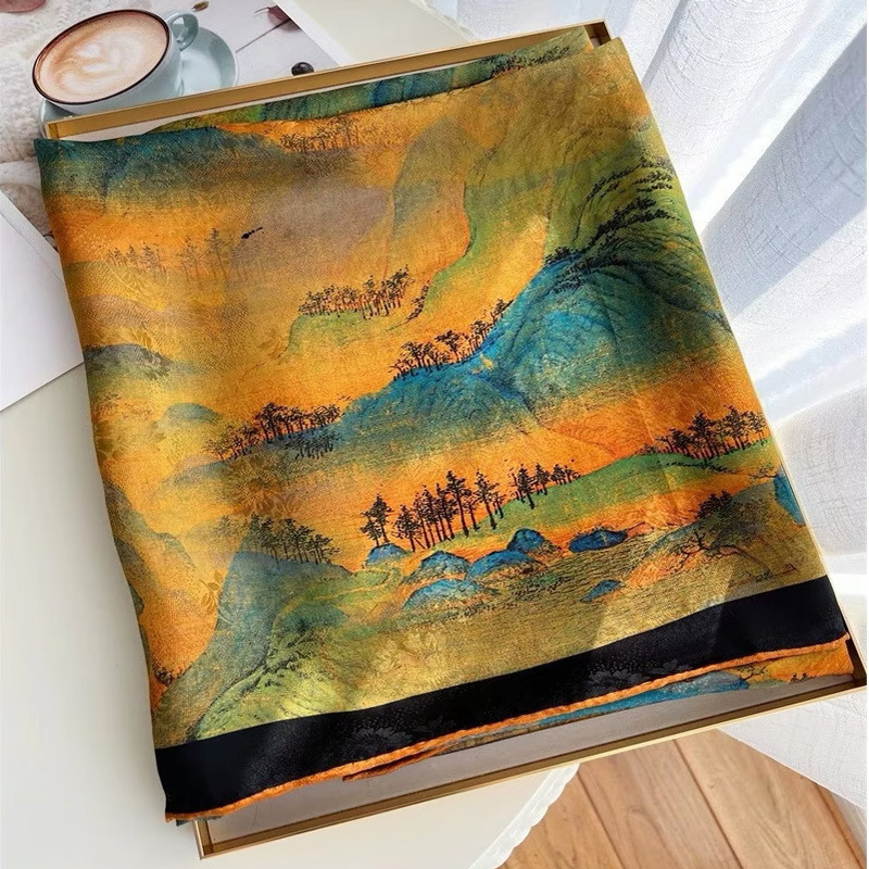 140*140 봄과 가을 샹윤 원사 양면 스퀘어 스카프 국가 스타일 국가 스타일 3 월 8 일 여성의 날 선물 목도리 실크 스카프스토어 가기