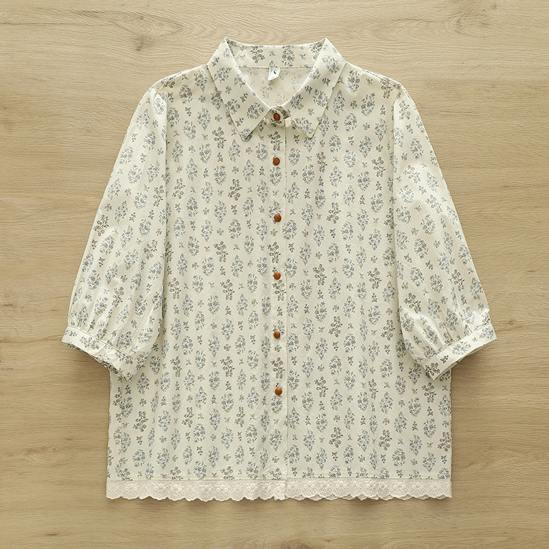 일본식 모리 소녀 목가적 인 꽃 세탁 면 레이스 여성용 카디건 반소매 셔츠 탑