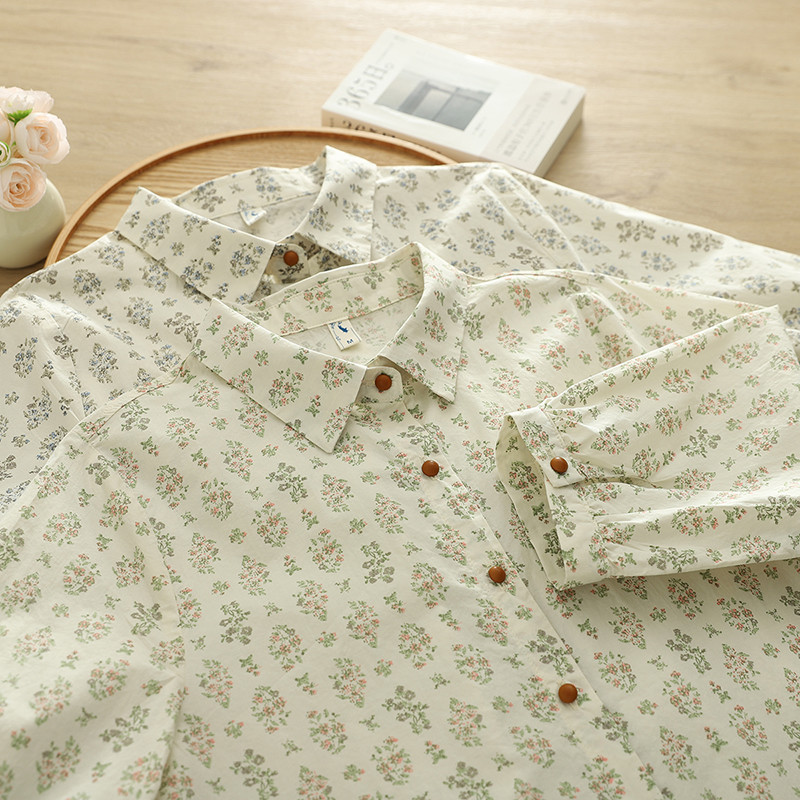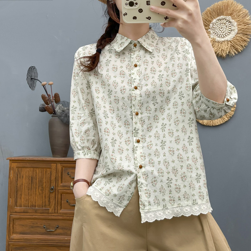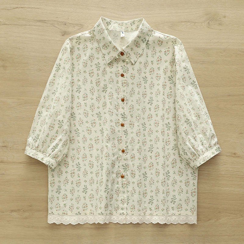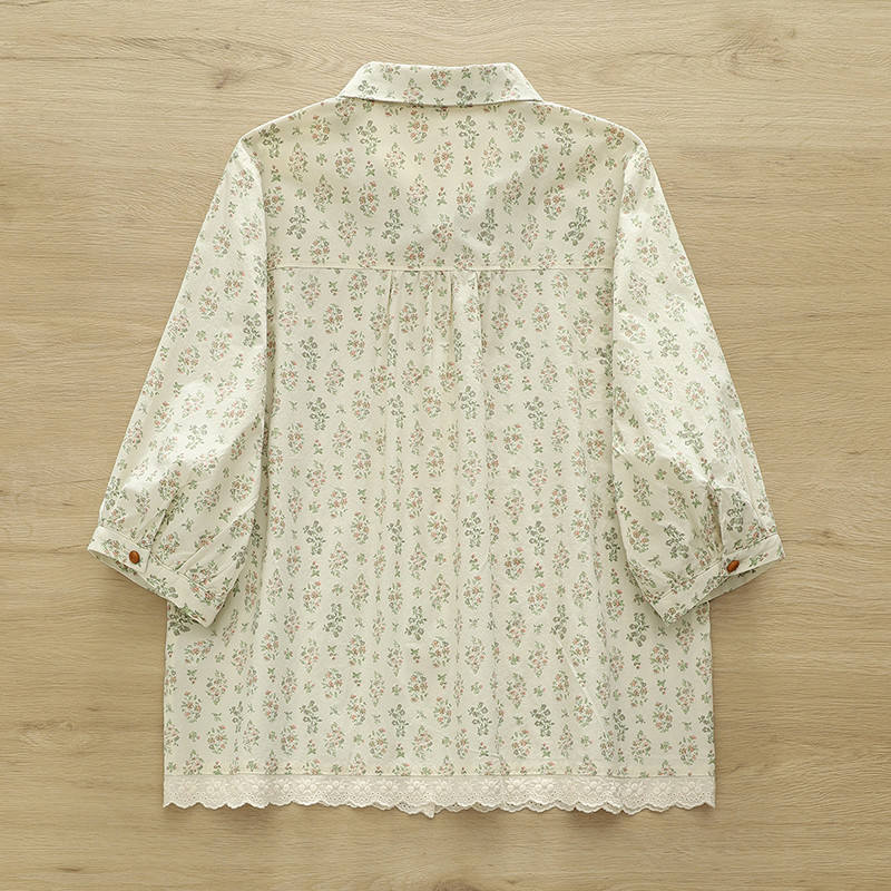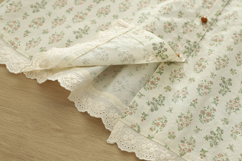 일본식 모리 소녀 목가적 인 꽃 세탁 면 레이스 여성용 카디건 반소매 셔츠 탑스토어 가기