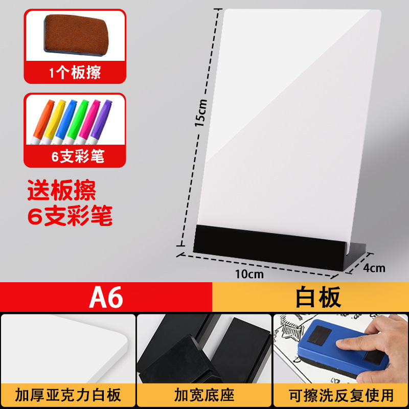 • A6 화이트보드에는 지우개 + 컬러펜 6개가 포함되어 있습니다.