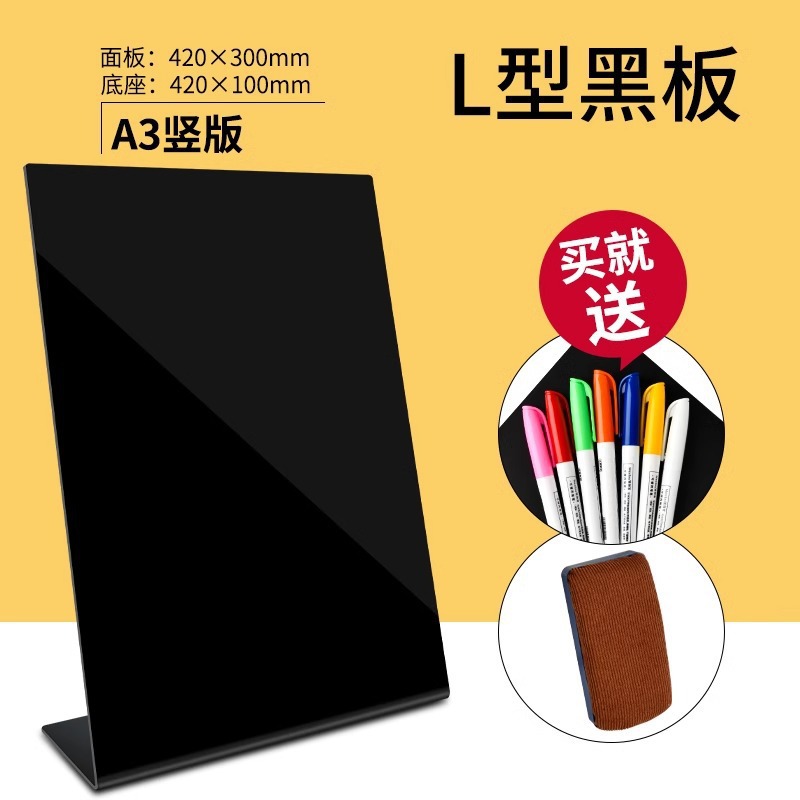 • L자형 칠판 간판-가로 A3+7색펜+지우개
