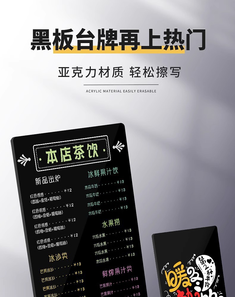 필기 메뉴 보드 광고판 아크릴 브랜드 멤버 충전 디스플레이 보드 가격 목록 창조적 인 스톨 작은 칠판