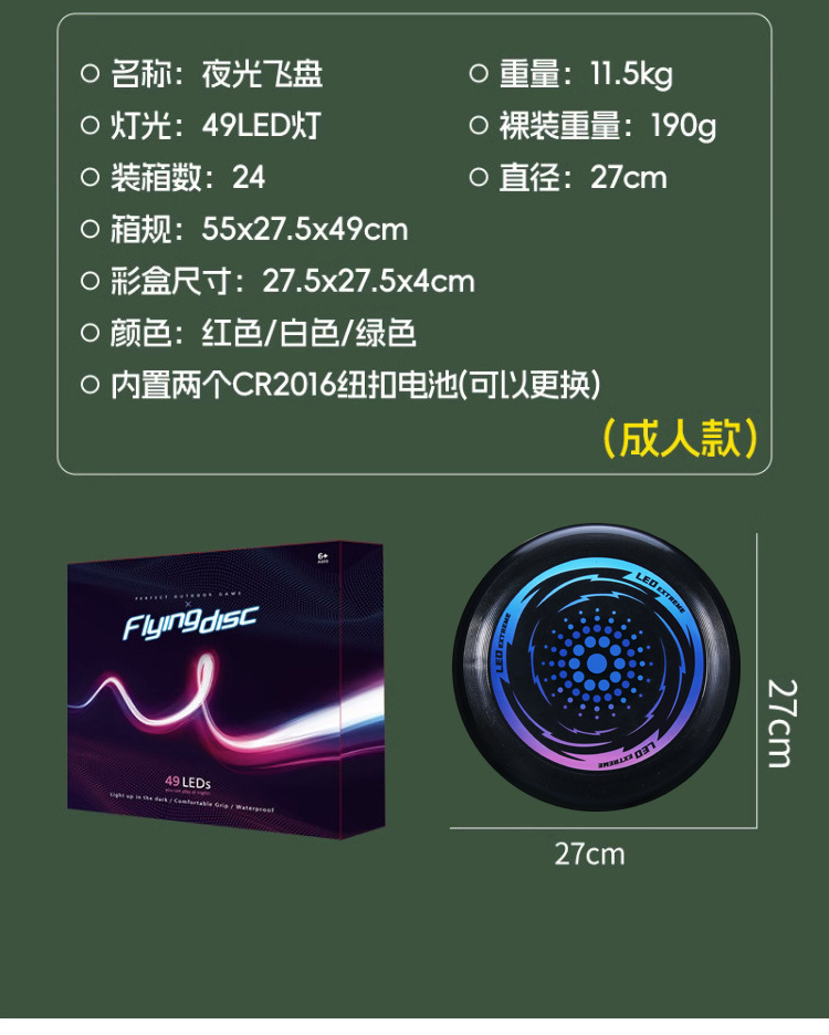 • 27cm 녹색 빛을 내는 PE 소프트 플라잉 디스크