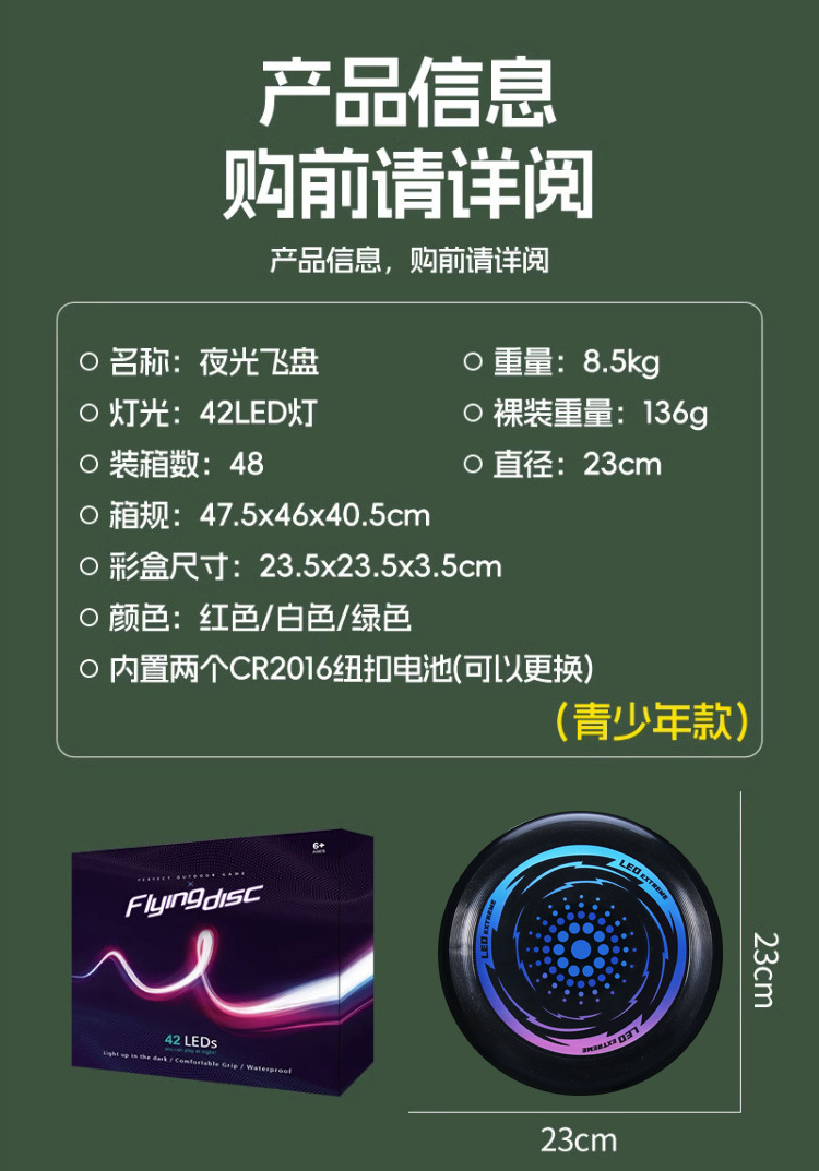 • 23cm 녹색 빛을 내는 PE 소프트 플라잉 디스크
