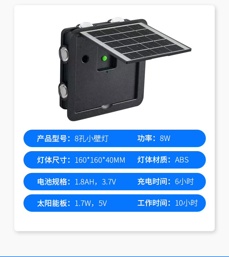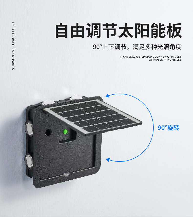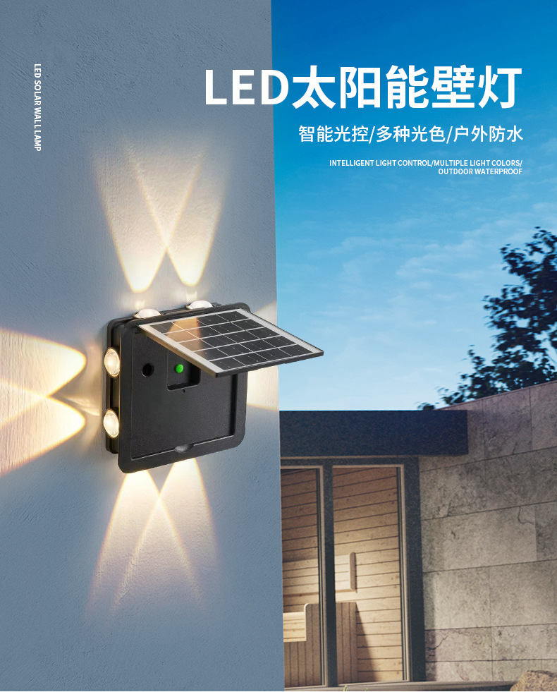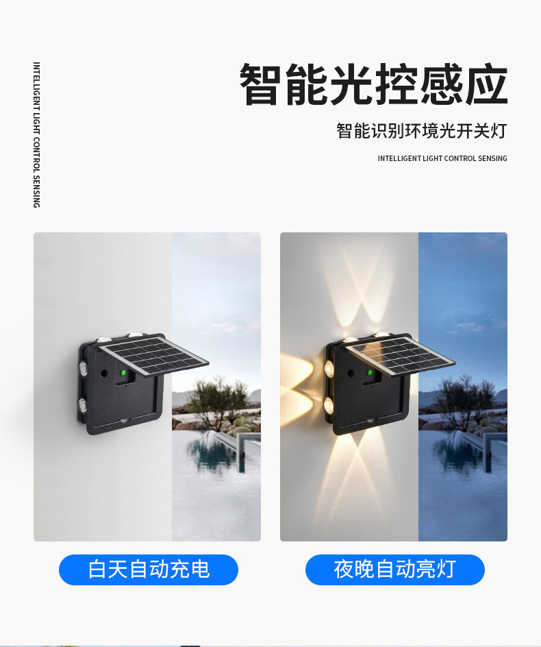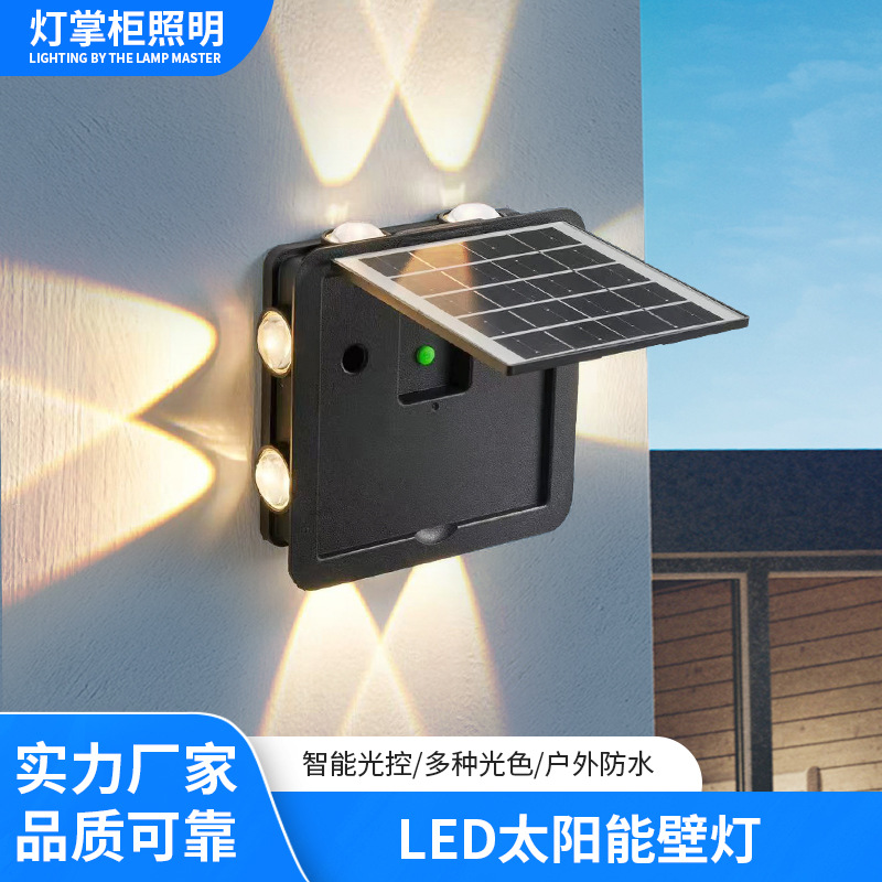 LED 태양광 벽 조명, 4면 발광, 유도 발광 조명, 실외 조명, 현대 정원 조명