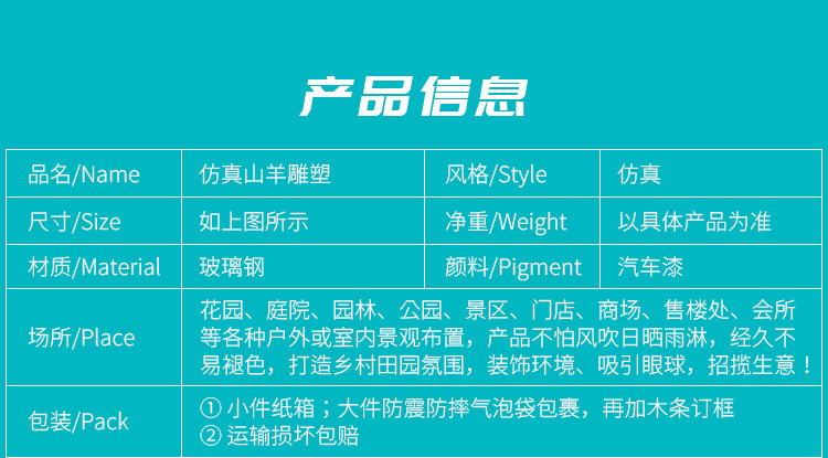 FRP 시뮬레이션 동물 모델 탄 양 장식품 야외 안뜰 농장 정원 장식 염소 조각 공예스토어 가기