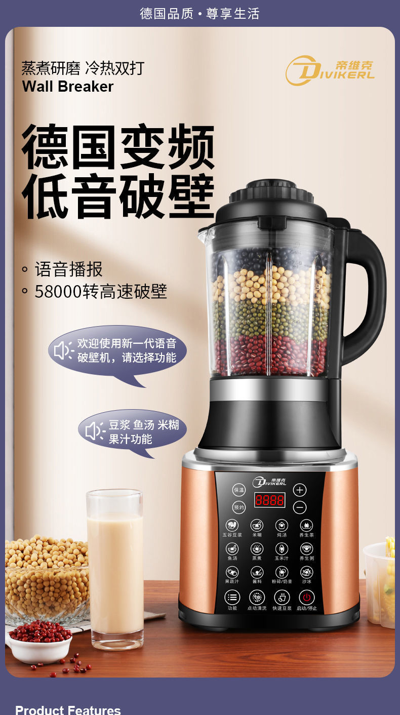 독일의 새로운 벽 파괴 기계 가정용 가열 완전 자동 무소음, 필터 프리 두유 다기능 요리 및 건강 관리 기계스토어 가기