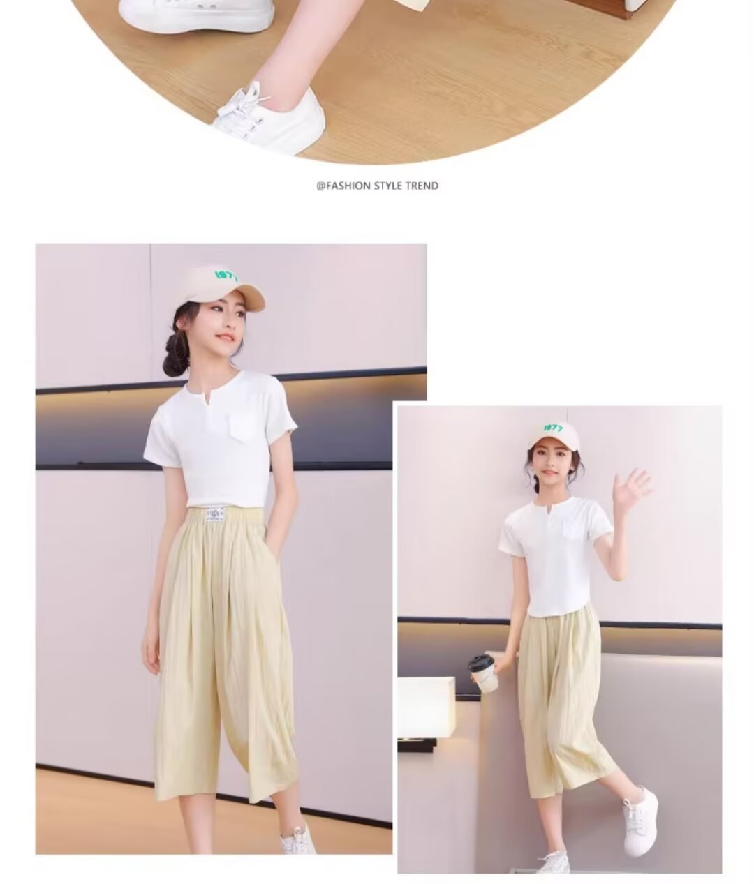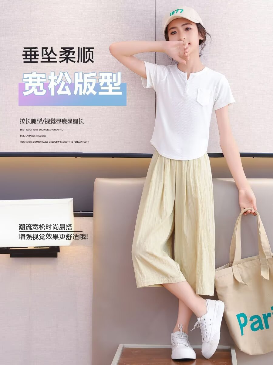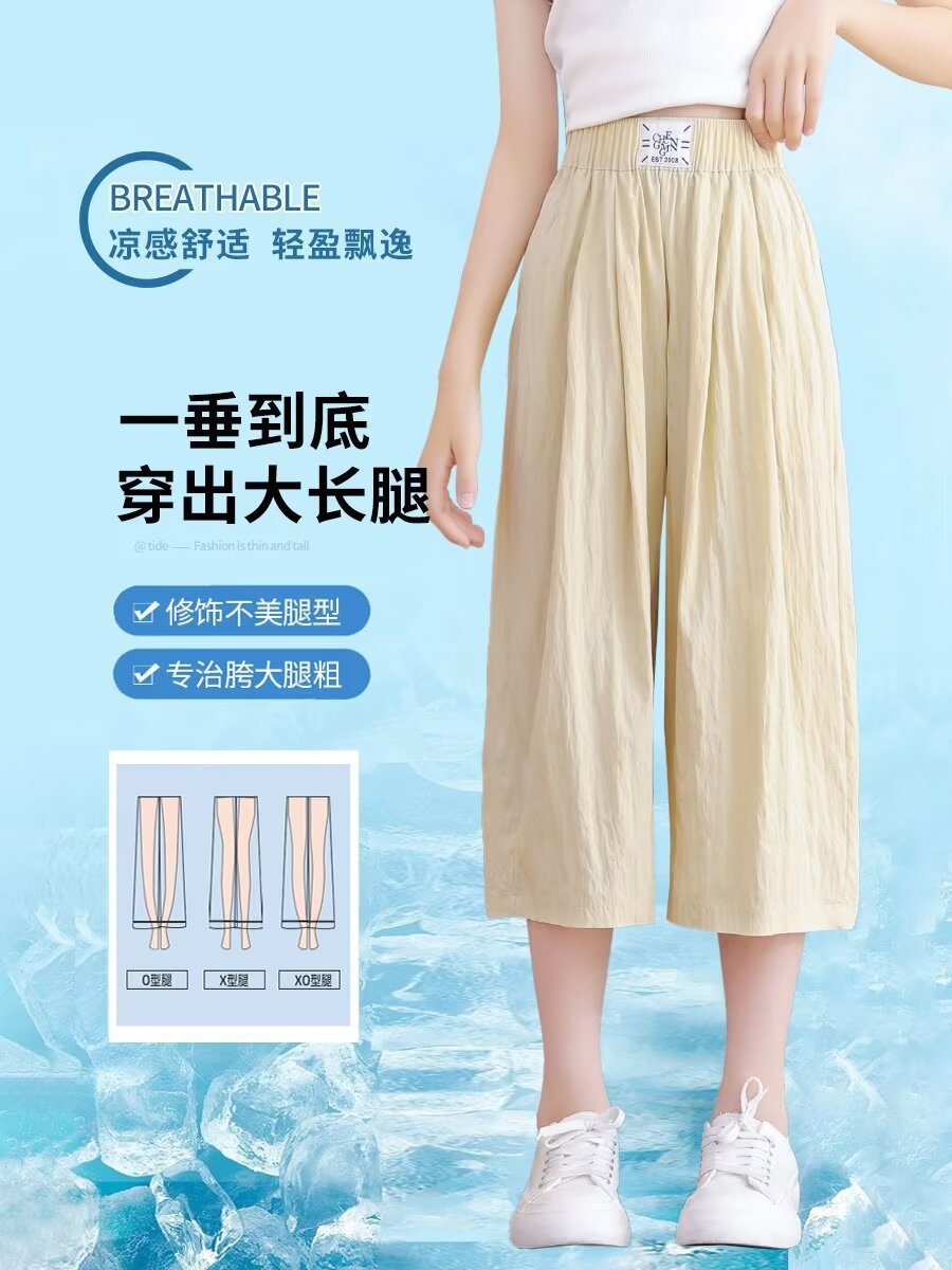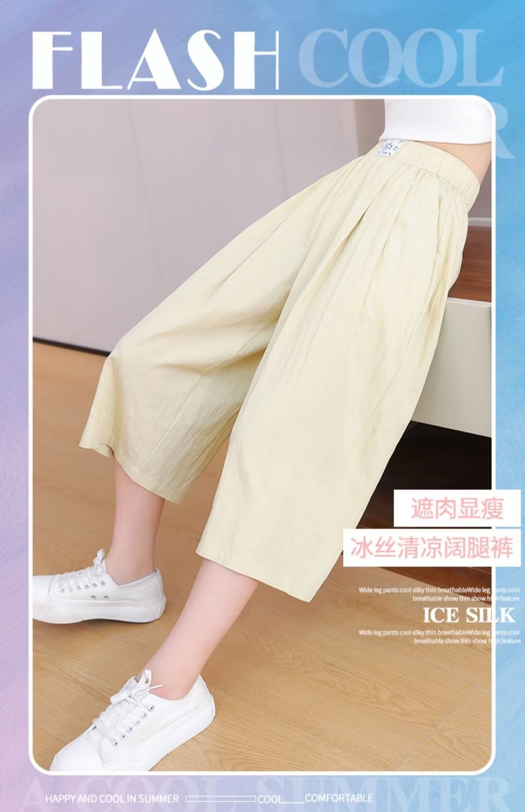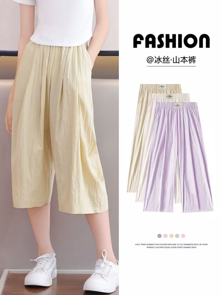 여아 아이스 실크 쿨 크롭 팬츠 2025 여름 얇은 아동 모기 방지 바지 중대형 아동 소녀 야마모토 바지 유행스토어 가기