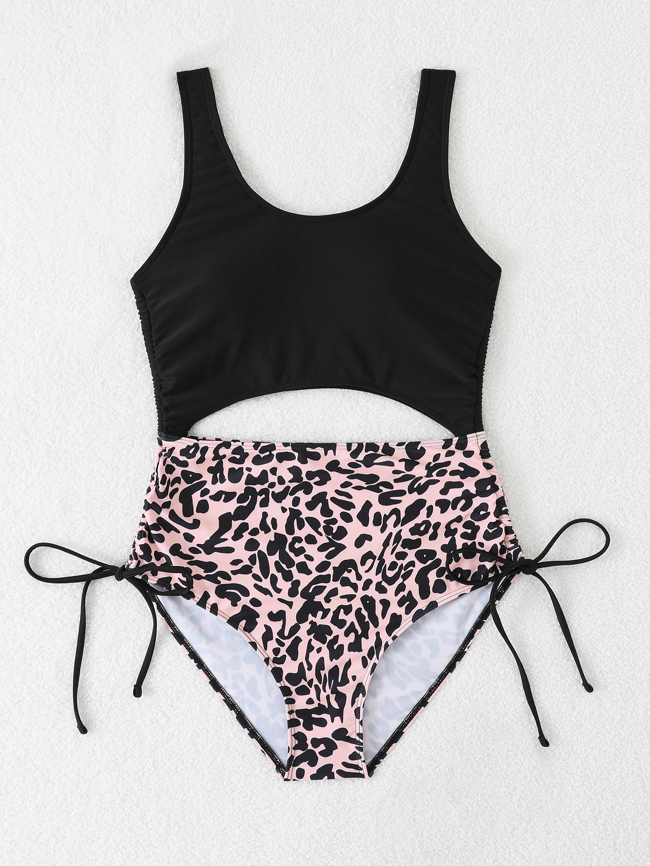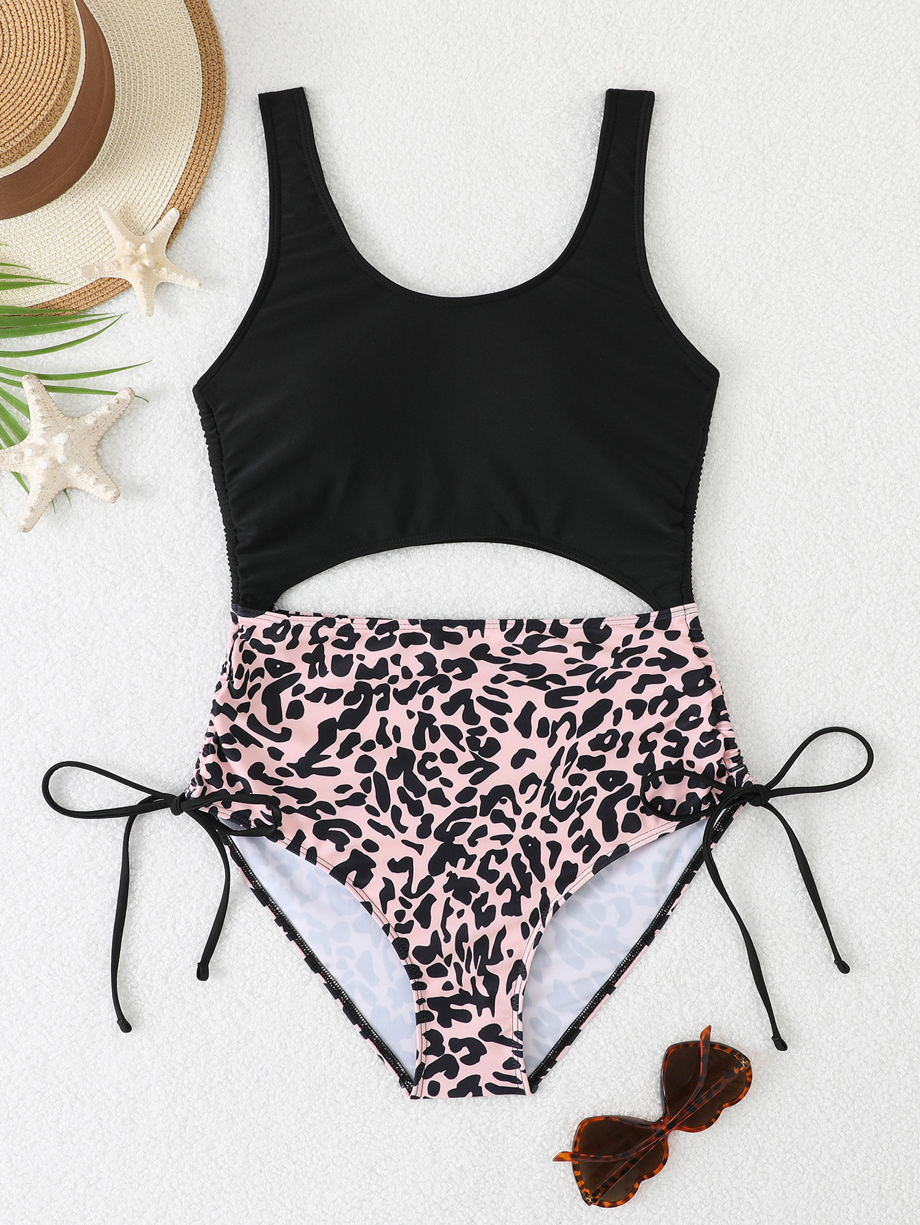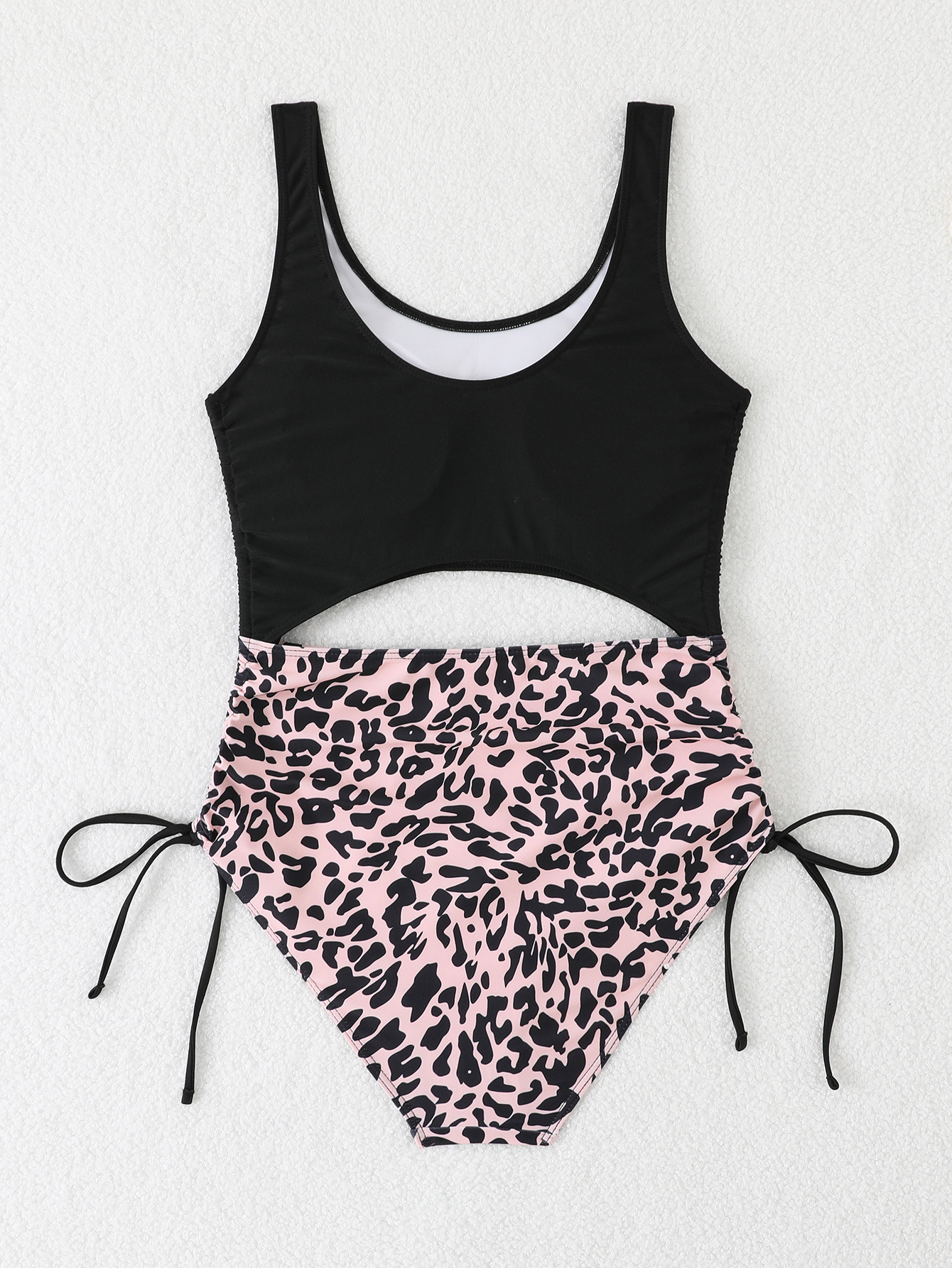 2024 새로운 국경 멀티 컬러 스트랩리스 타이트 수영복 여성 유럽과 미국 레오파드 무늬 하이 허리 레이스 업 핫 스프링 비키니스토어 가기