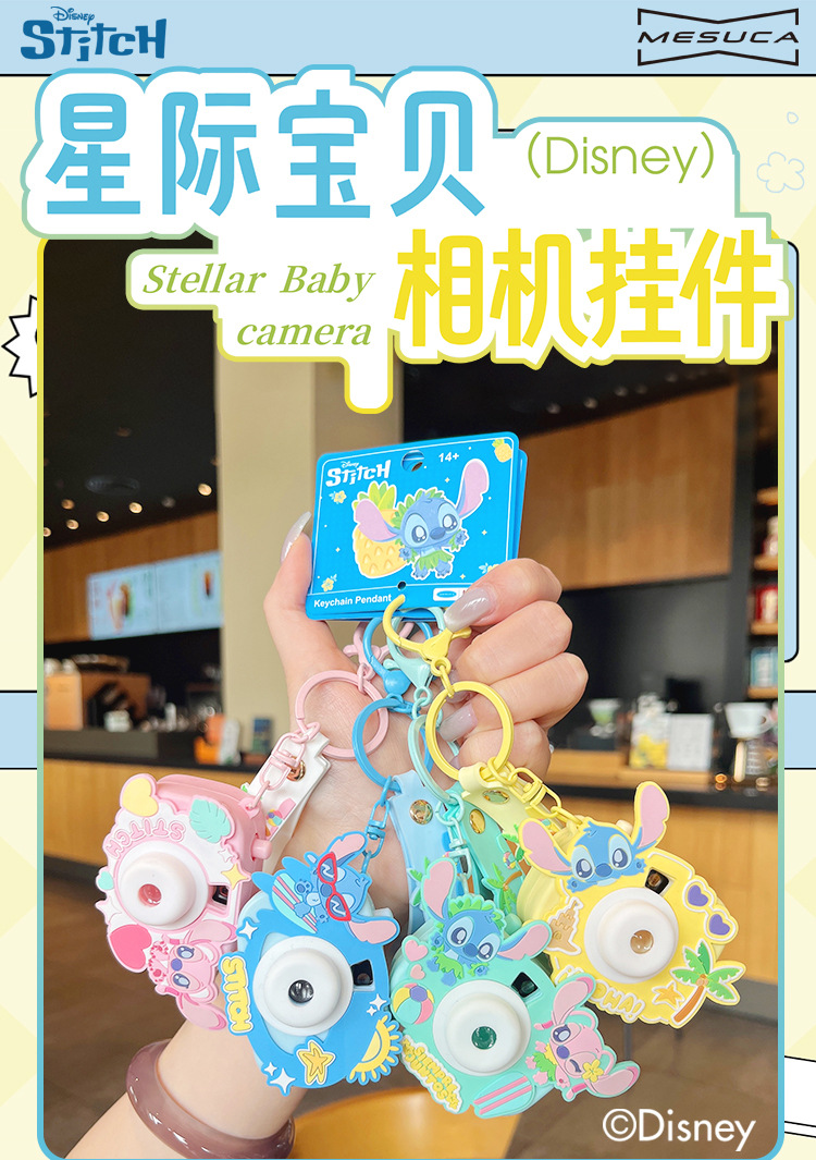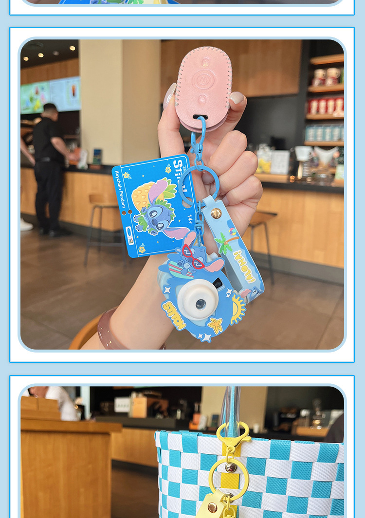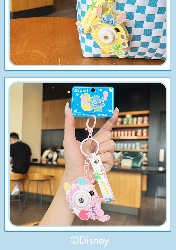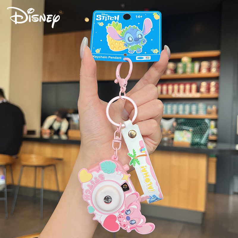 정품 스티치 스타 아기 스티치 가방 펜던트 인형 인형 재미 카메라 키 체인 여성스토어 가기