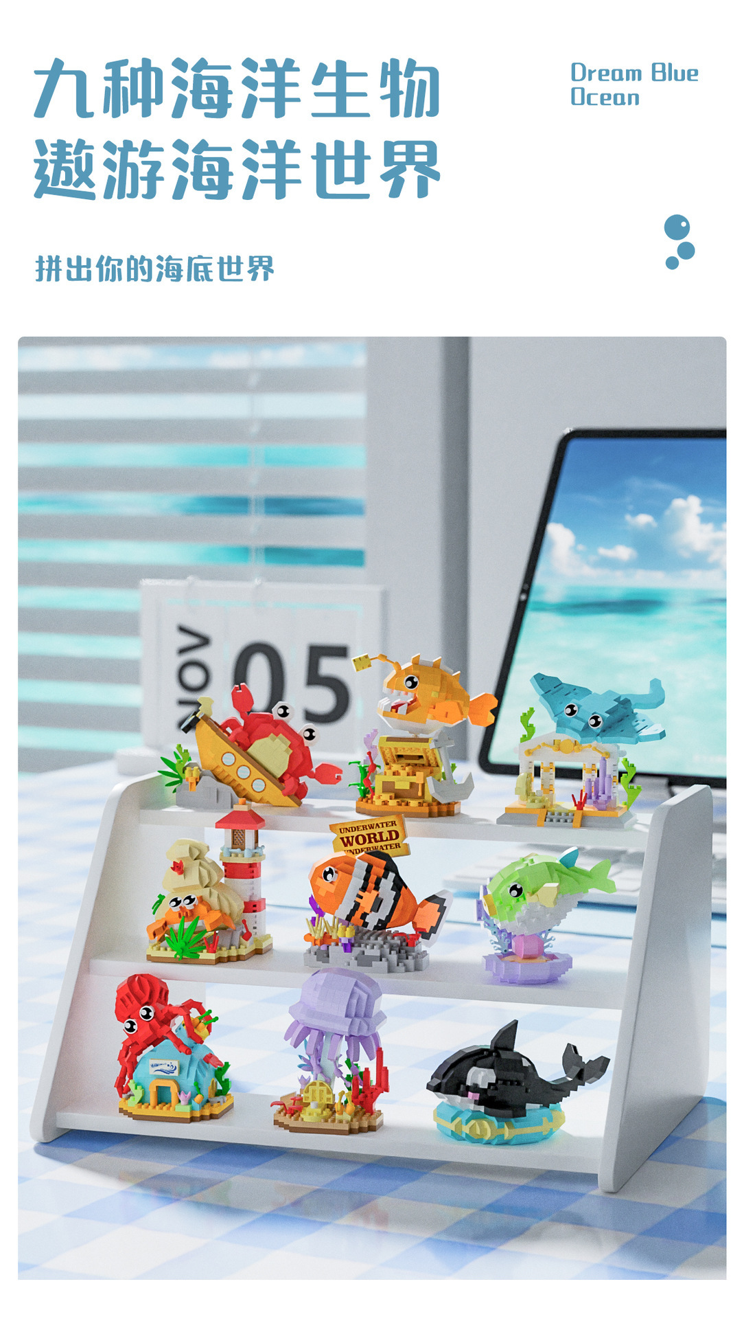 레고 킬러 고래 상어 어류 바다 세계 동물 모델 조립 된 건물 블록 장난감 6 가지 선물