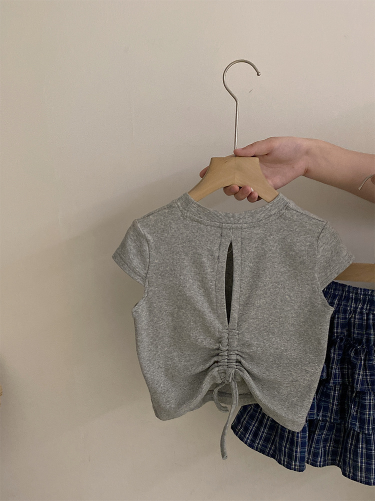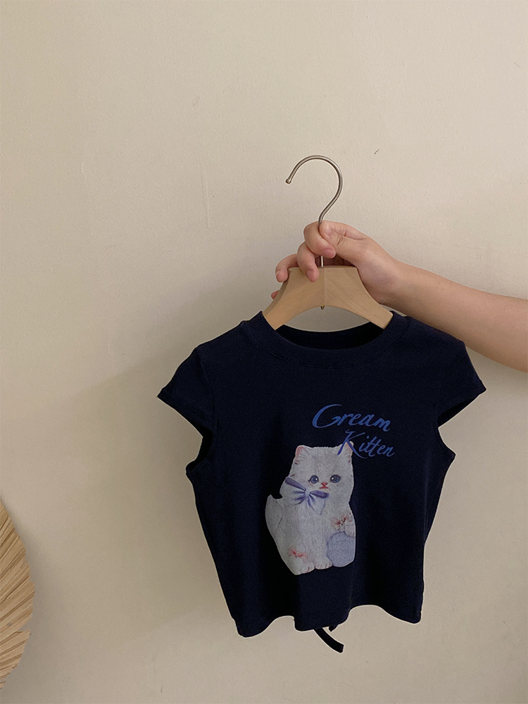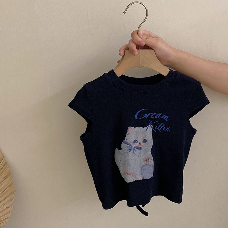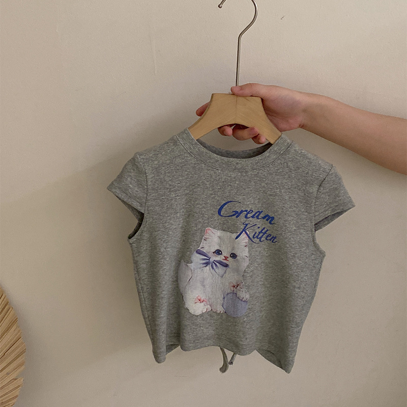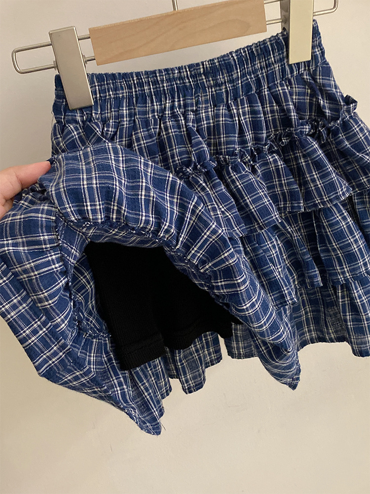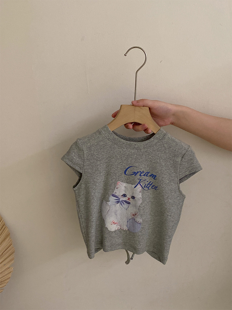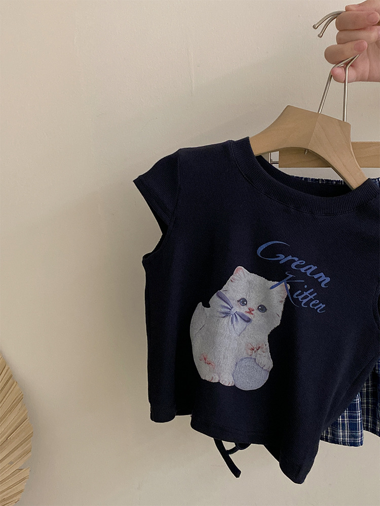 여자 투피스 세트 미국식 고양이 어깨 반팔 티셔츠 여자 여름 2025 새로운 어린이 올매치 플레이드 스커트스토어 가기
