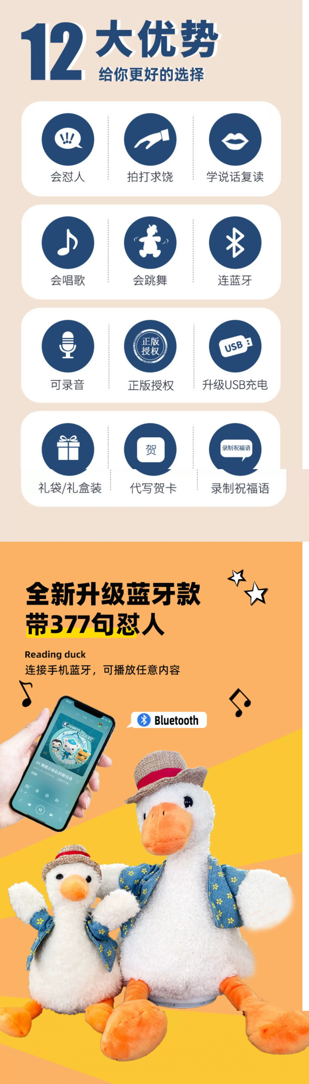 • [배터리 버전 반복 오리] 노래하기 + 말하기 학습(배터리는 포함되어 있지 않음)