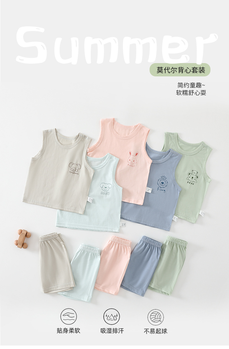 어린이 모달 조끼 정장 얇은 여름 소년과 소녀 홈 의류 민소매 에어컨 의류 잠옷스토어 가기