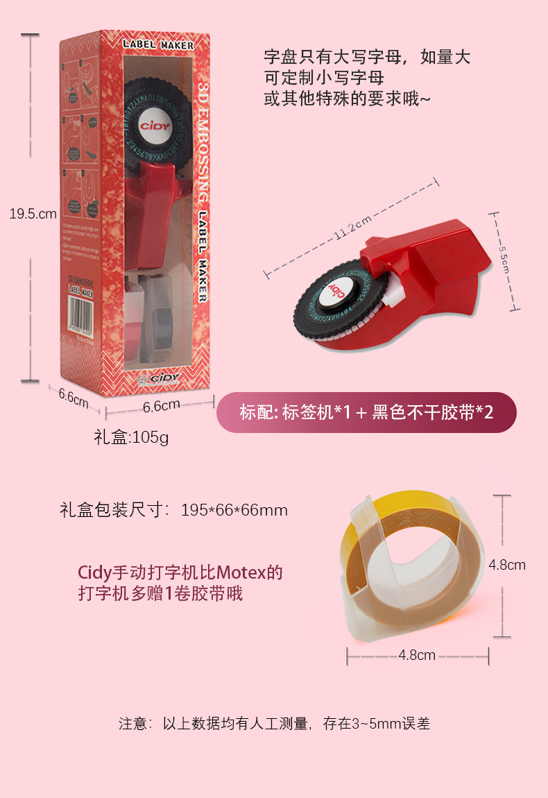 Cidy手动打字机比Motex的打字机多赠1卷胶带哦