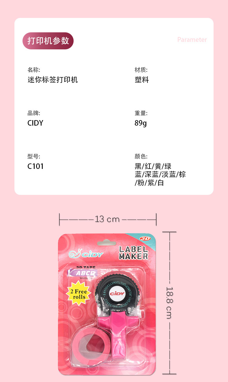 另赠2卷胶带 规格:宽9mm*3M长