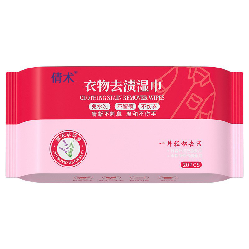 옷 오염 제거 젖은 물티슈 옷 젖은 젖은 종이 탈지 및 오염 제거를위한 특수 인공물 비상 휴대용 20 조각 독립 팩