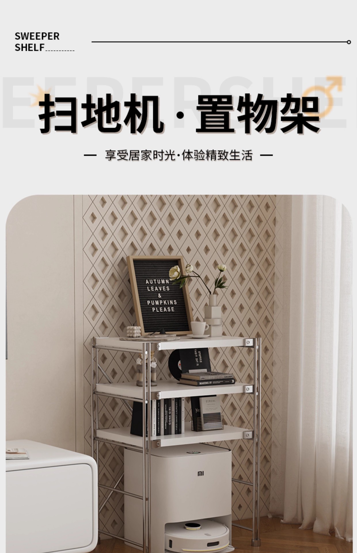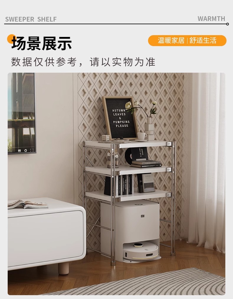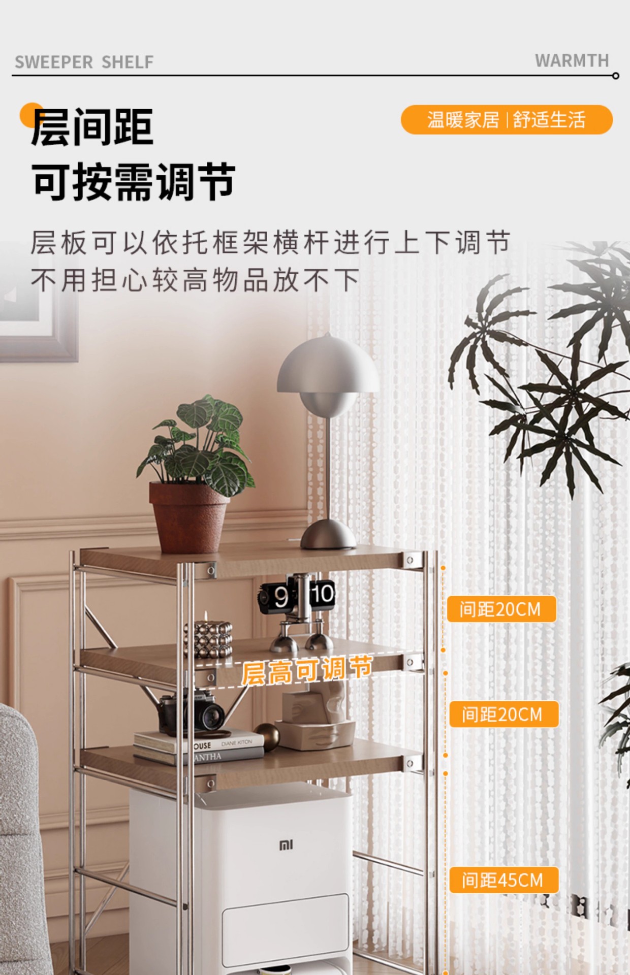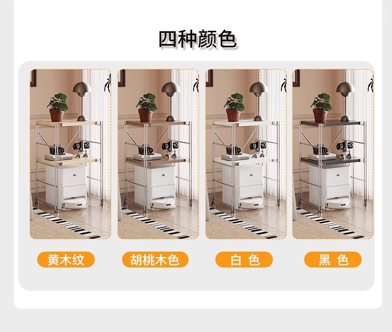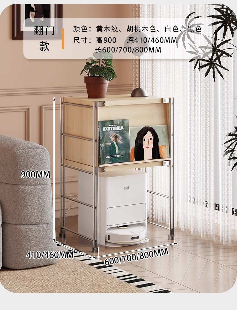 스위핑 로봇 최고 저장 랙 코보스 밀레 고양이 쓰레기 분지 저장 랙 낮은 빈 모바일 저장 캐비닛 측면