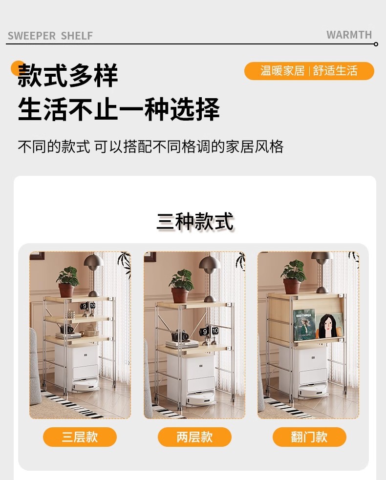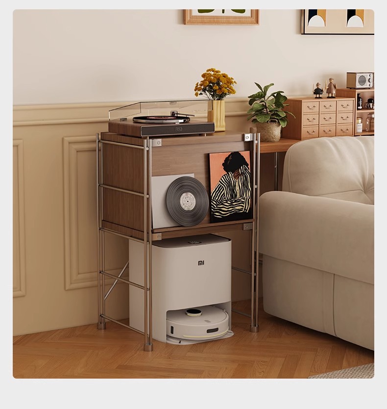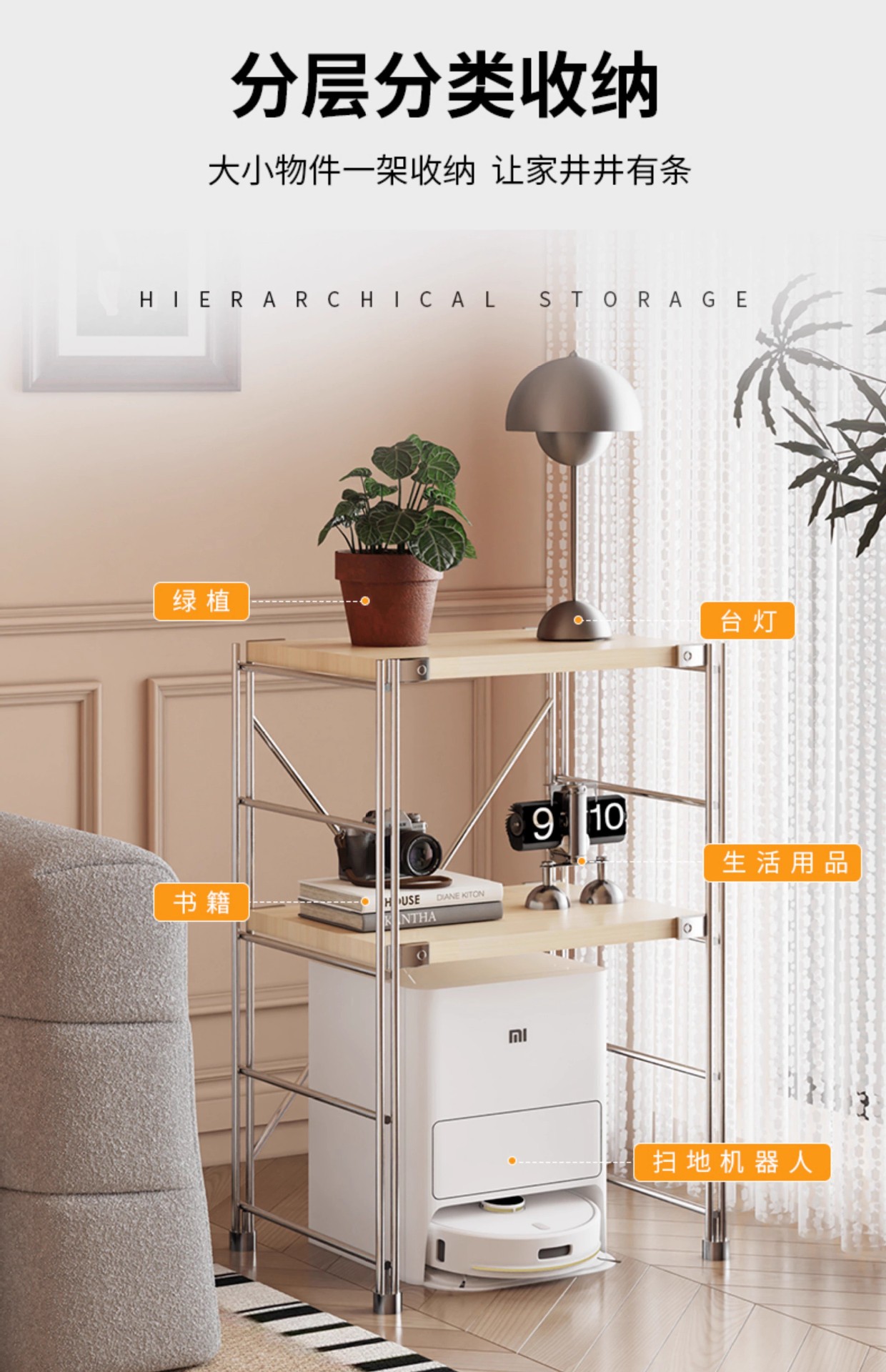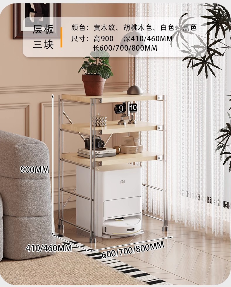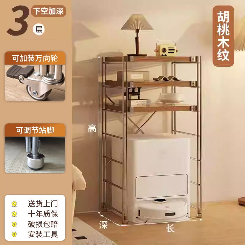 스위핑 로봇 최고 저장 랙 코보스 밀레 고양이 쓰레기 분지 저장 랙 낮은 빈 모바일 저장 캐비닛 측면