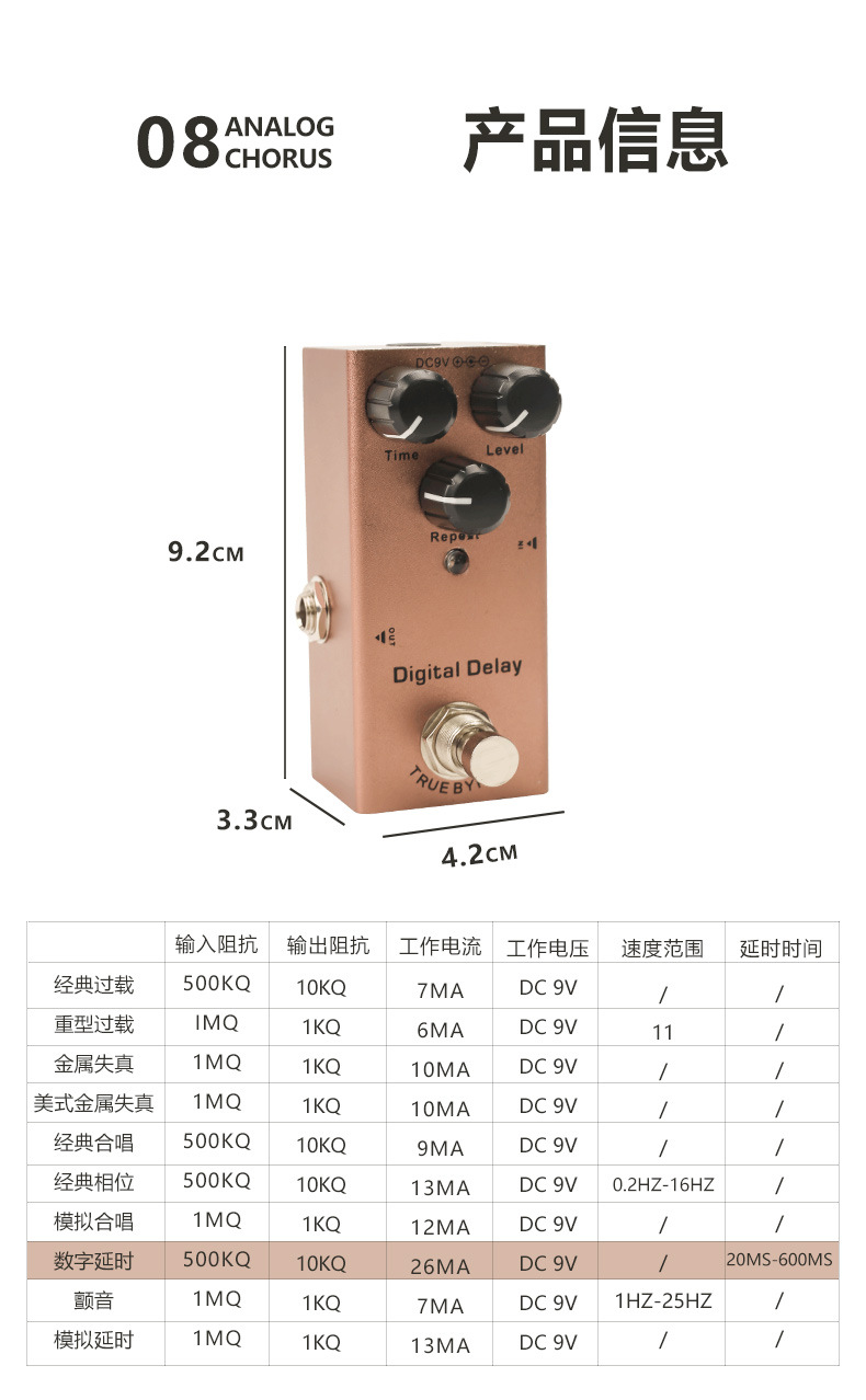 08 디지털 지연 전기 기타 이펙터 단일 블록 이펙터 전문 미니 편리/오버로드/지연
