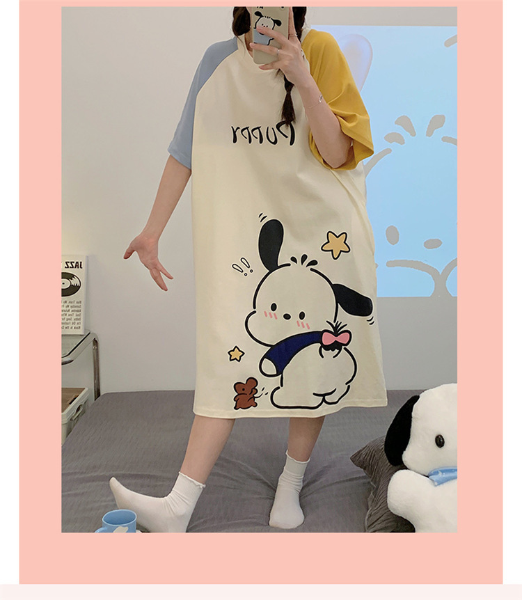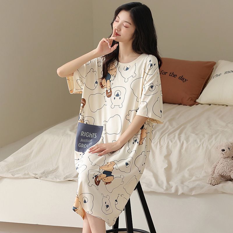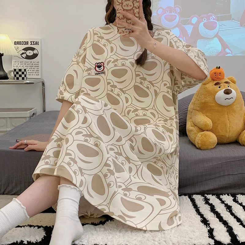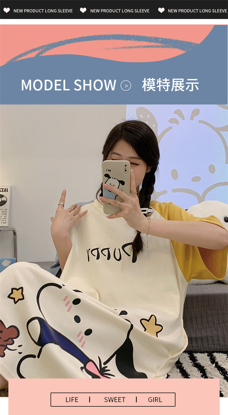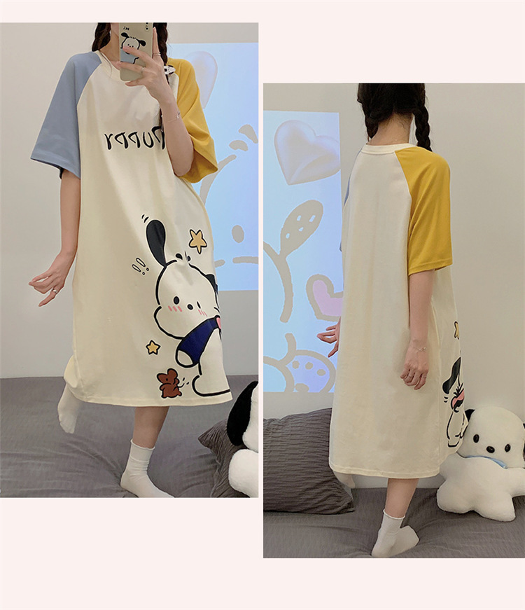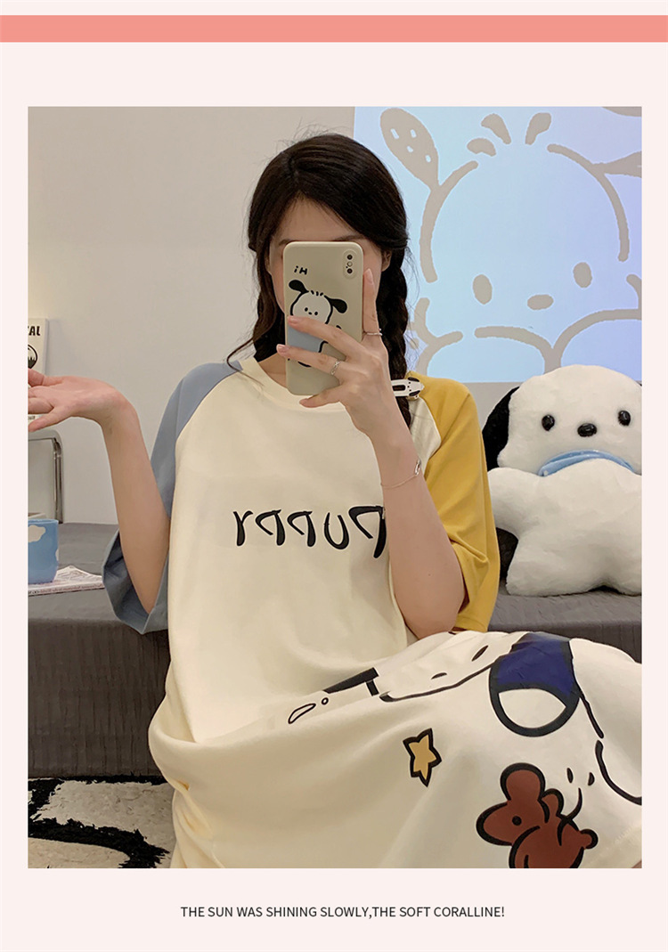 나이트 드레스 여성의 여름 얇은 귀여운 달콤한 짧은 소매 Ins 느슨한 만화 학생 플러스 사이즈 파샬 개 잠옷 봄과 가을스토어 가기