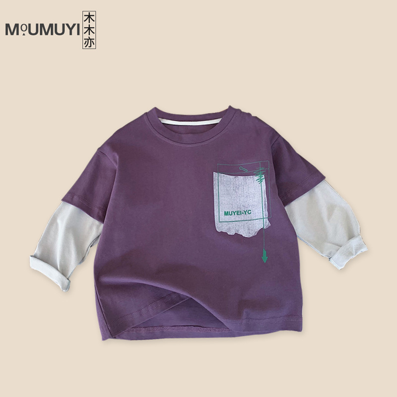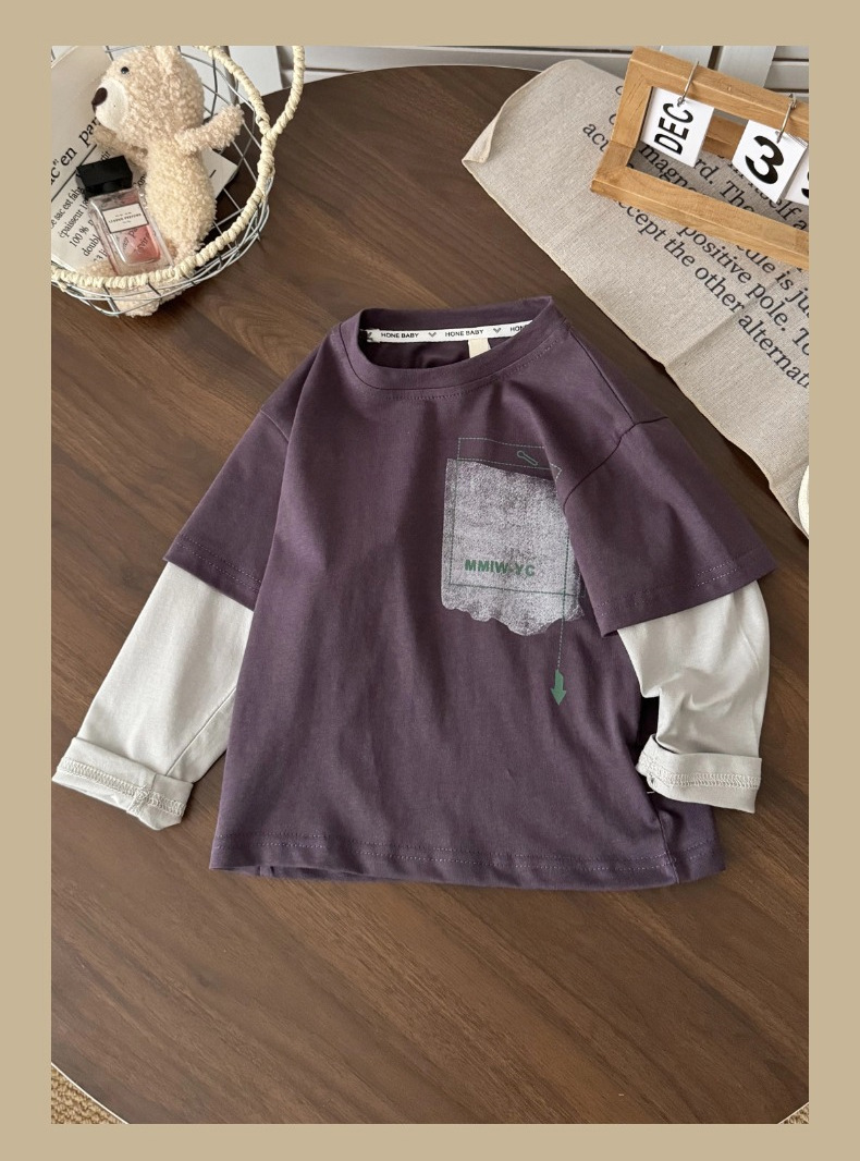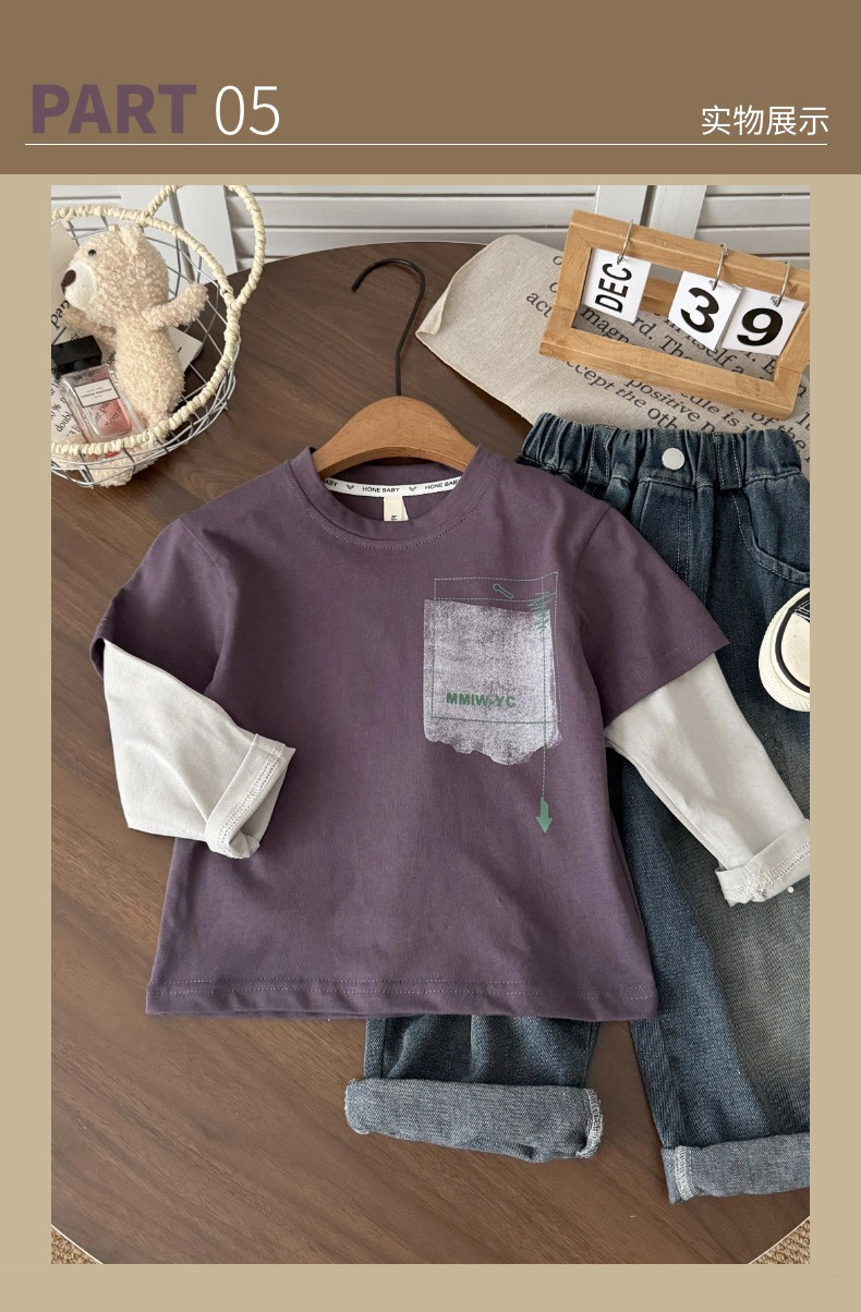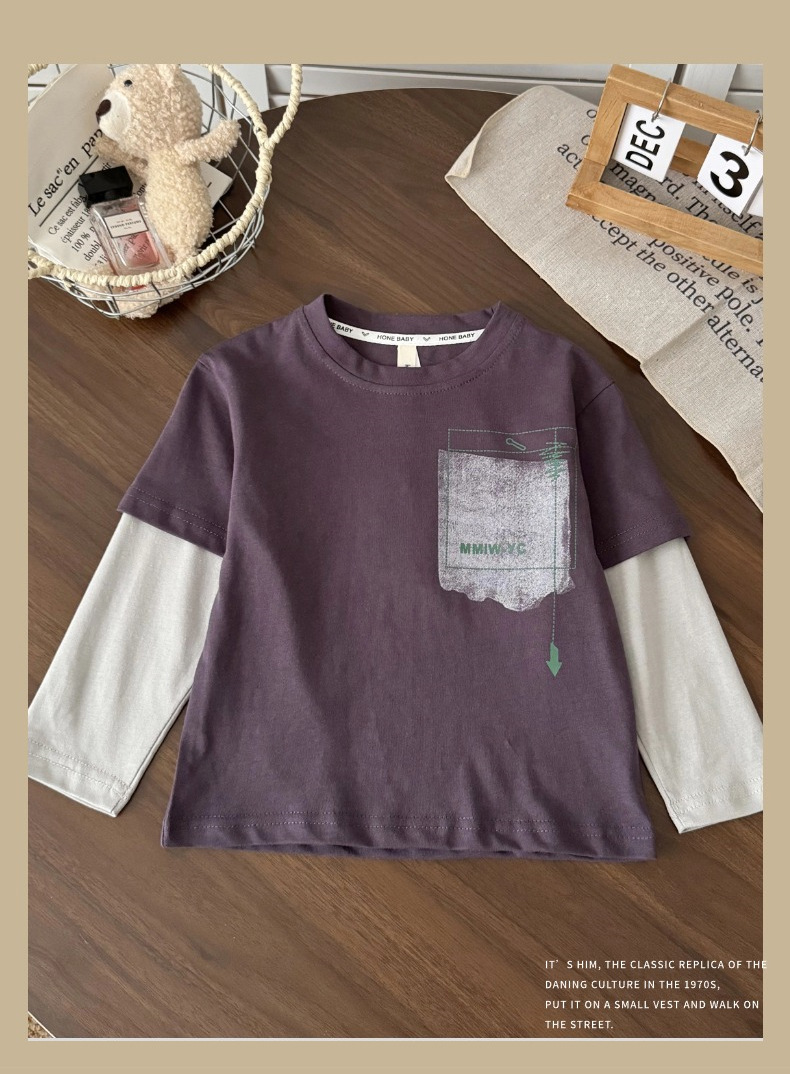 아동베이스 셔츠 2025 봄 새 아동복 소년 한국식 순면 편지 인쇄 바느질 가짜 투피스 탑스토어 가기