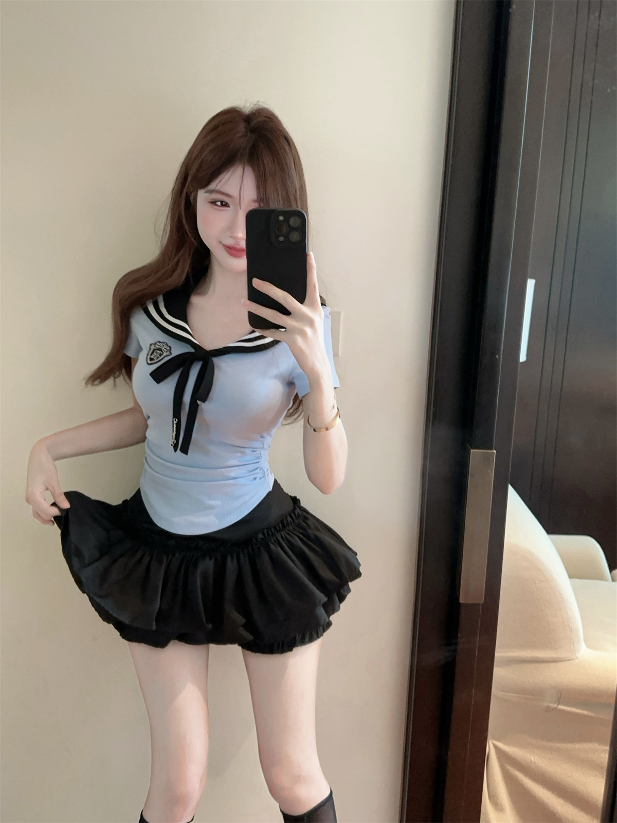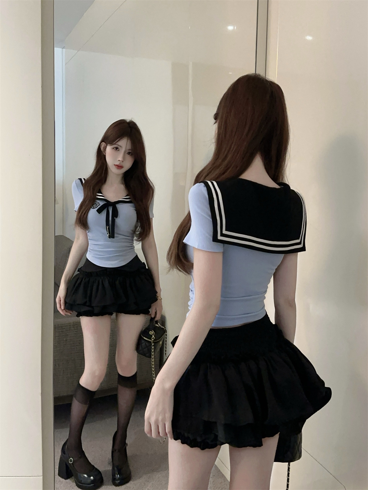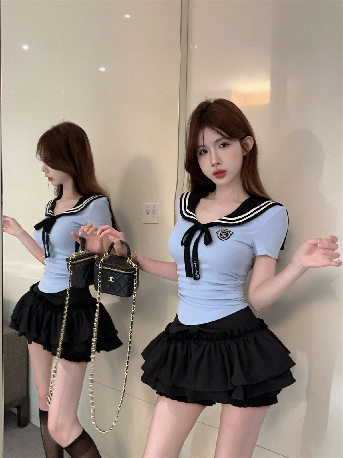 여성을위한 대학 스타일의 예쁜 반팔 탑 여름 순수 달콤한 스파이스 소녀 여성을위한 짧은 최고급 세련된 아름다운 티셔츠스토어 가기