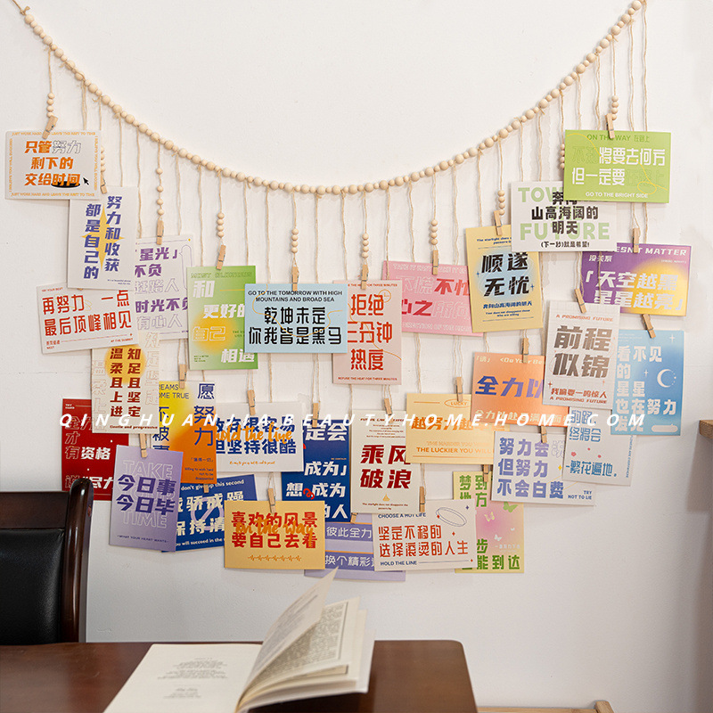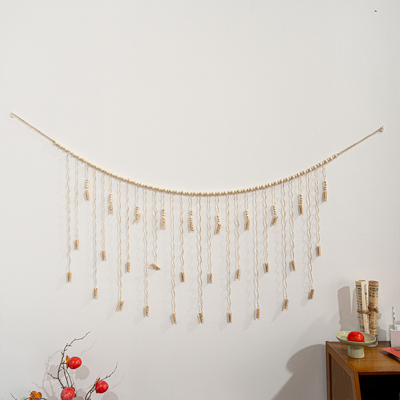 구멍이 없는 걸이식 사진 벽, 나무 구슬, 대마 로프 클립, 사진 벽 보관 및 디스플레이, 창의적인 가정 장식 고양이스토어 가기