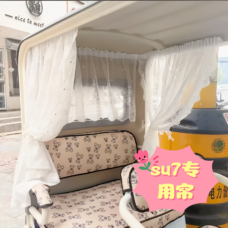 세발 자전거 장식 커튼 Jinpeng su7 세발 자전거 레이스 자체 접착 커튼 벨크로 솔리드 컬러 거즈 커튼 짧은 커튼 블라인드스토어 가기