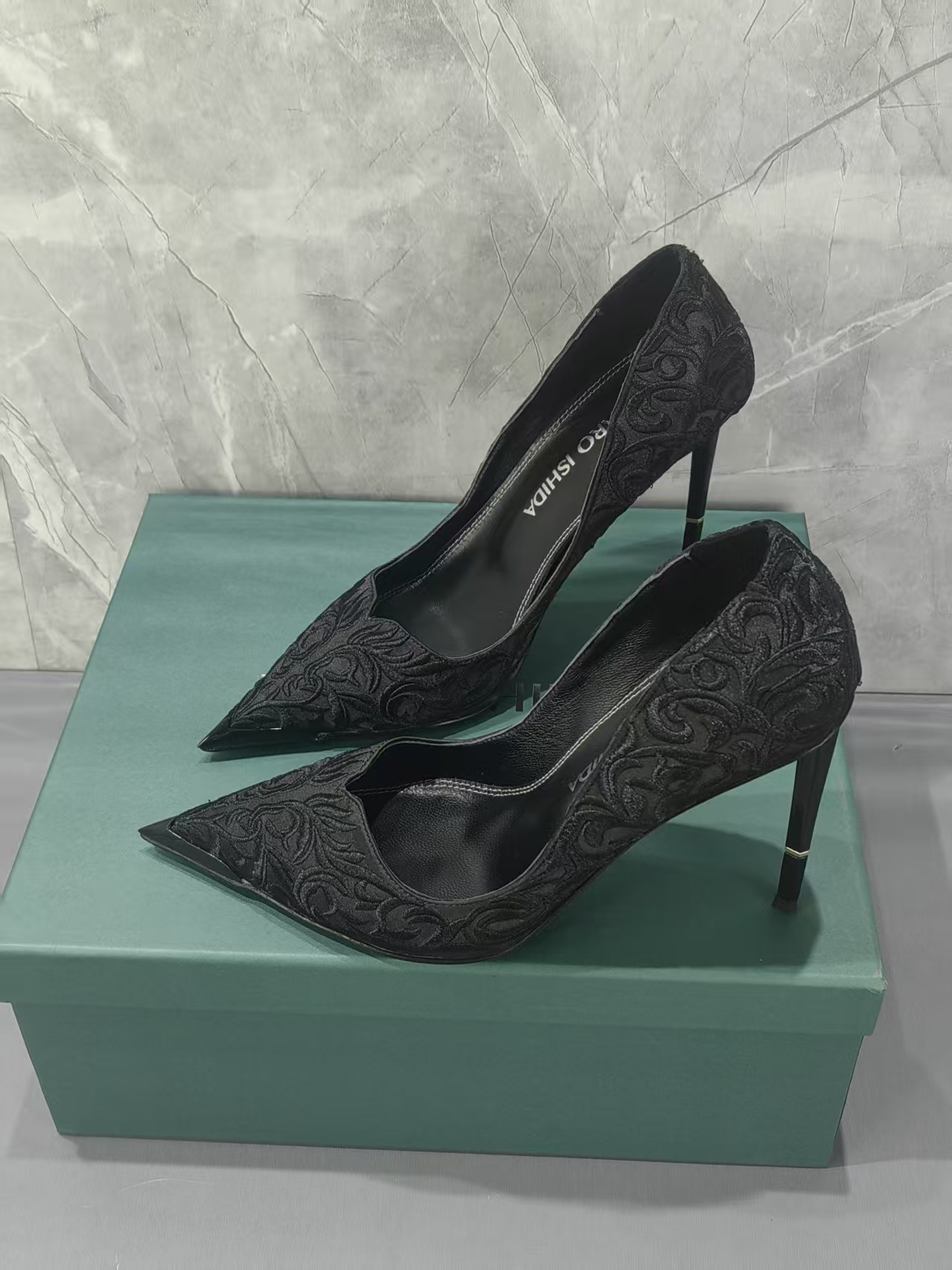 Schiaparelli 새 봄 뾰족한 높은 굽 파인 새틴 신발 여성 신발 플러스 사이즈 국경 간 상품