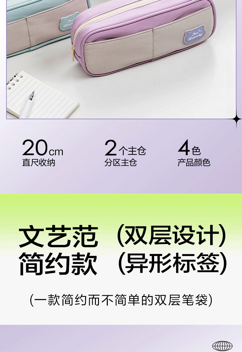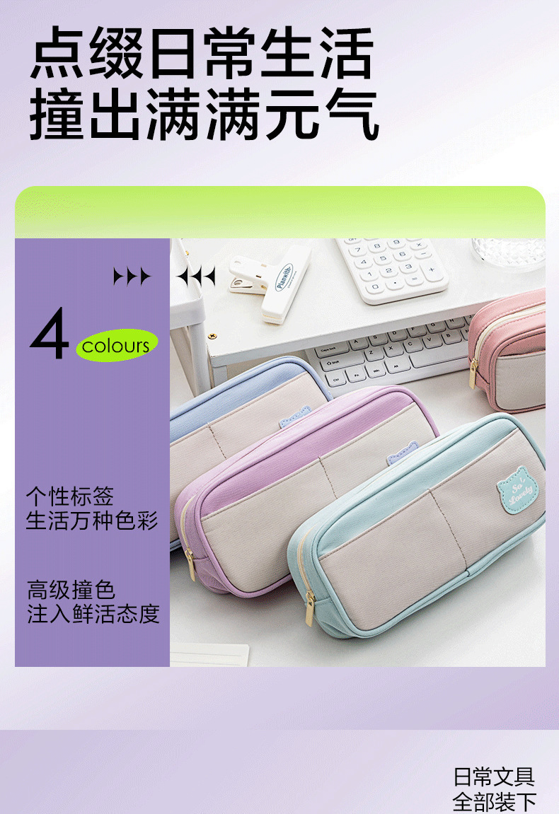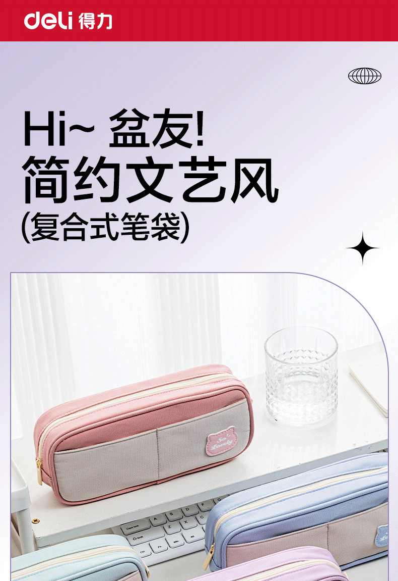 델리 BC400 복합 문구 연필 가방 소녀 다목적 대용량 더블 레이어 가방 학생 연필 가방