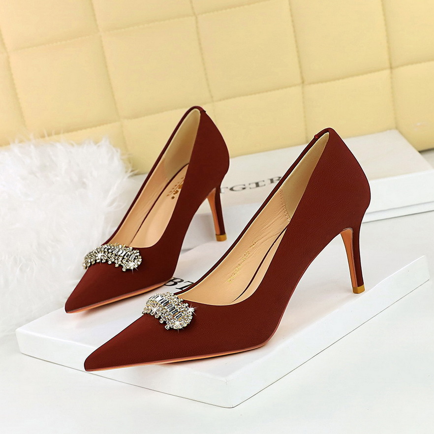 3391-AK31 유럽 및 미국 스타일 패션 하이힐 스틸레토 힐 얕은 입을 가리켜 빛나는 물 다이아몬드 버클 하이힐 신발 여성용 신발스토어 가기