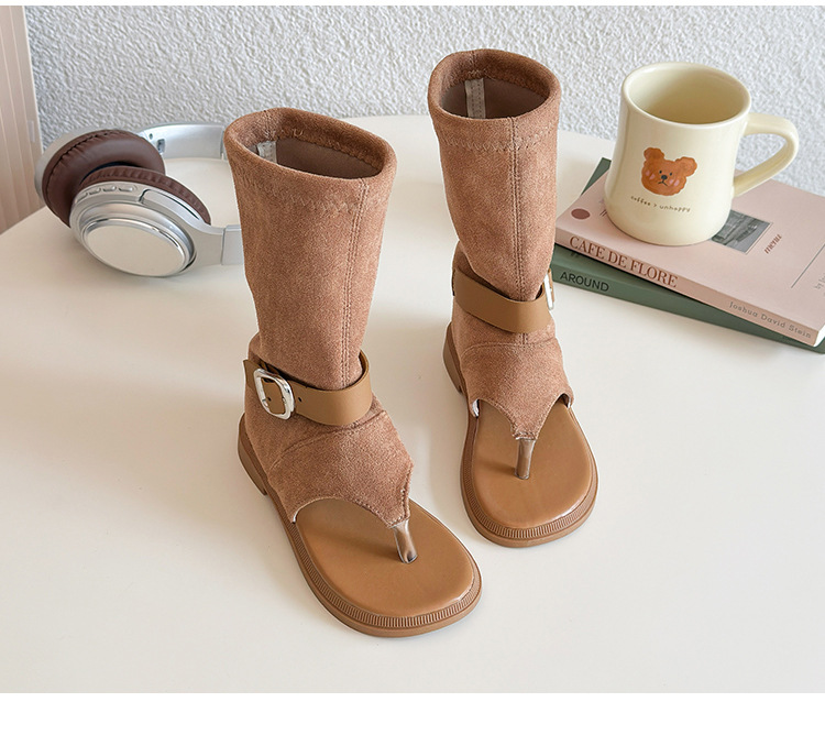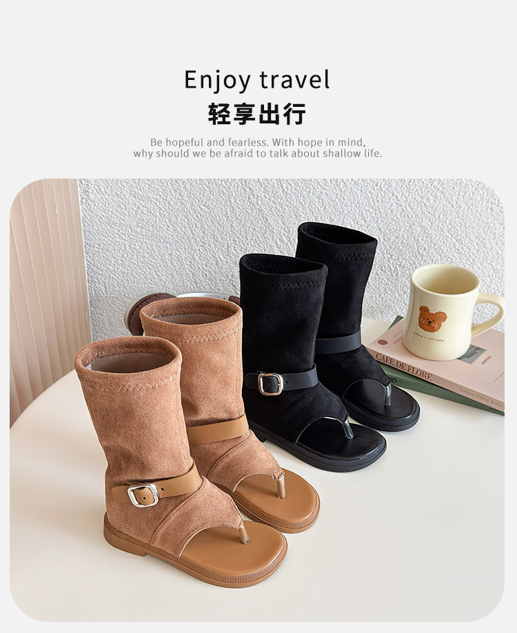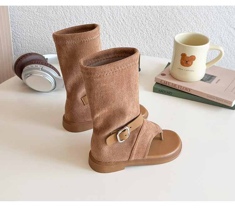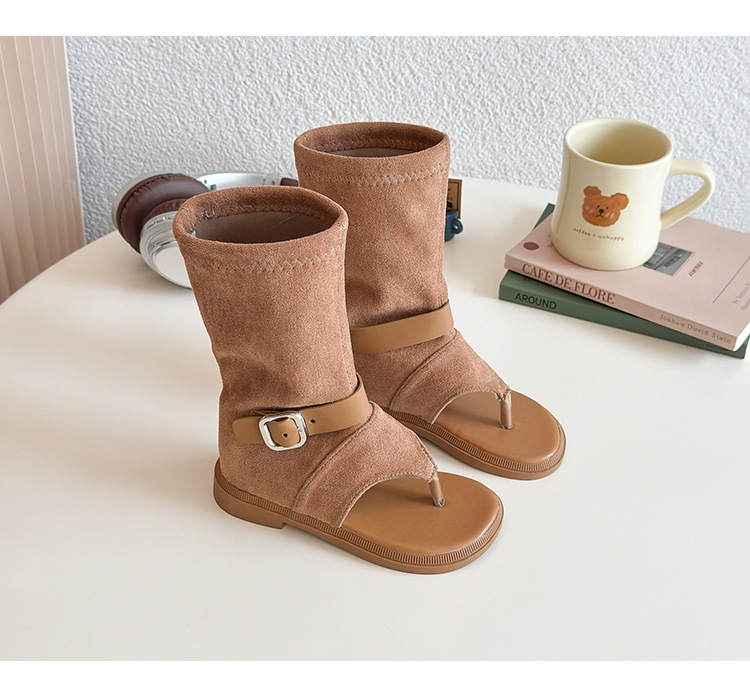 소녀 심플 스타일 하이 탑 레그 슈즈 2025 여름 새로운 어린이 할로우 오픈 발가락 샌들 베이비 샌들스토어 가기