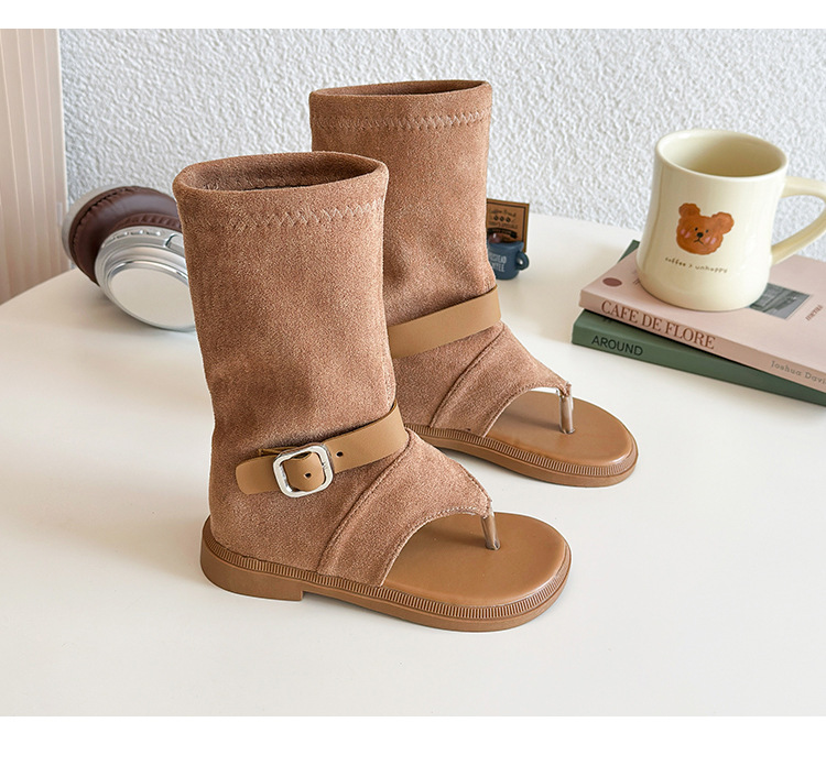 소녀 심플 스타일 하이 탑 레그 슈즈 2025 여름 새로운 어린이 할로우 오픈 발가락 샌들 베이비 샌들