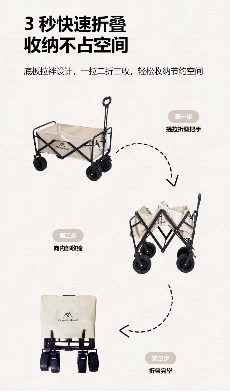 야외캠핑, 접이식 캠핑트레일러, 캠핑카, 피크닉카, 손으로 당기는 트롤리, 노점카트를 갖춘 산의고객스토어 가기