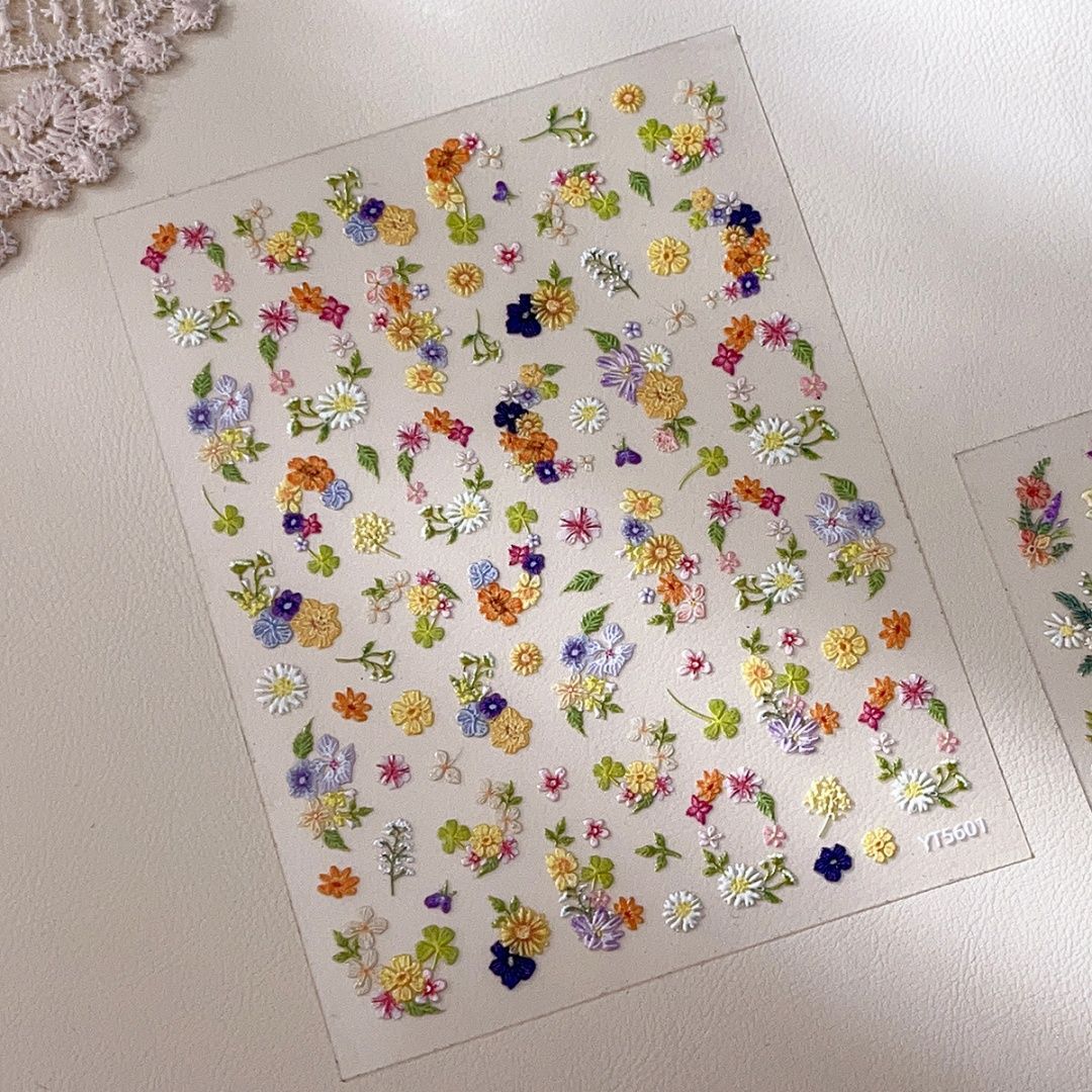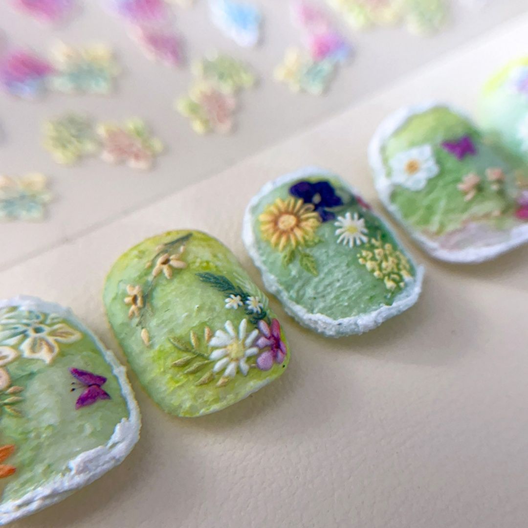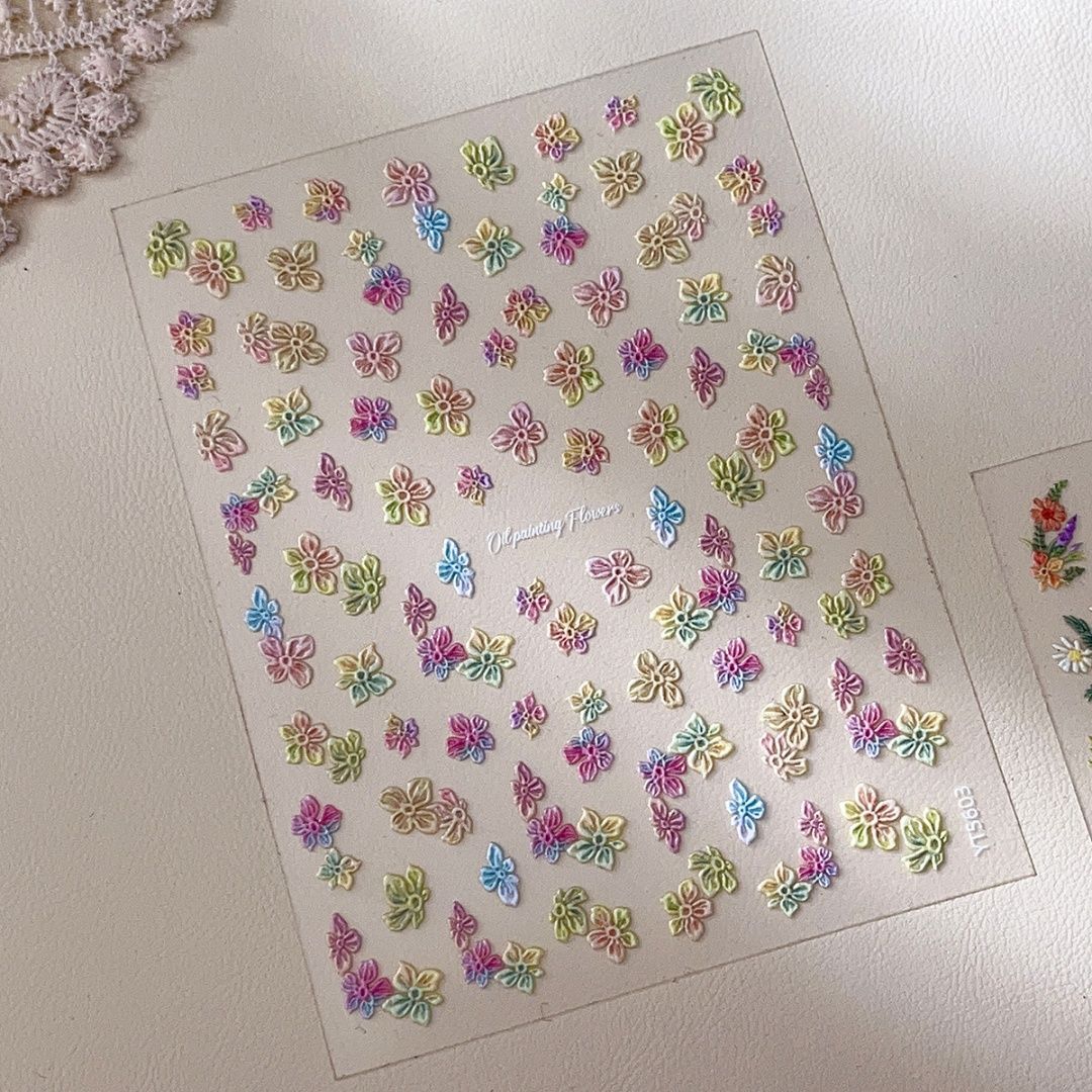 새로운 여름 유화 꽃 모네 정원 양각 네일 아트 스티커 3D 다채로운 귀여운 꽃 달콤한 장식 스티커스토어 가기