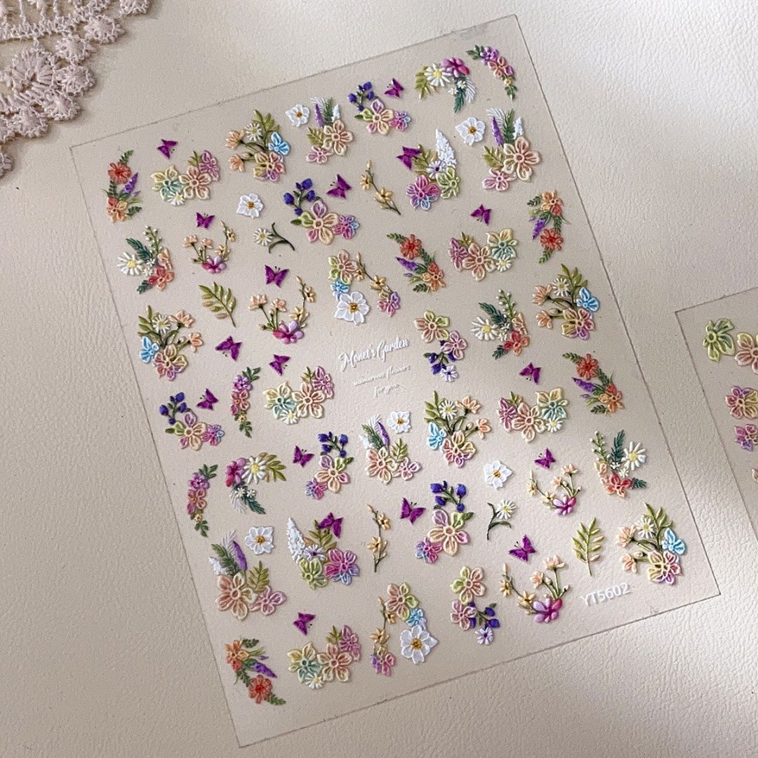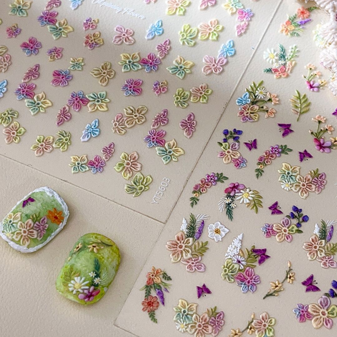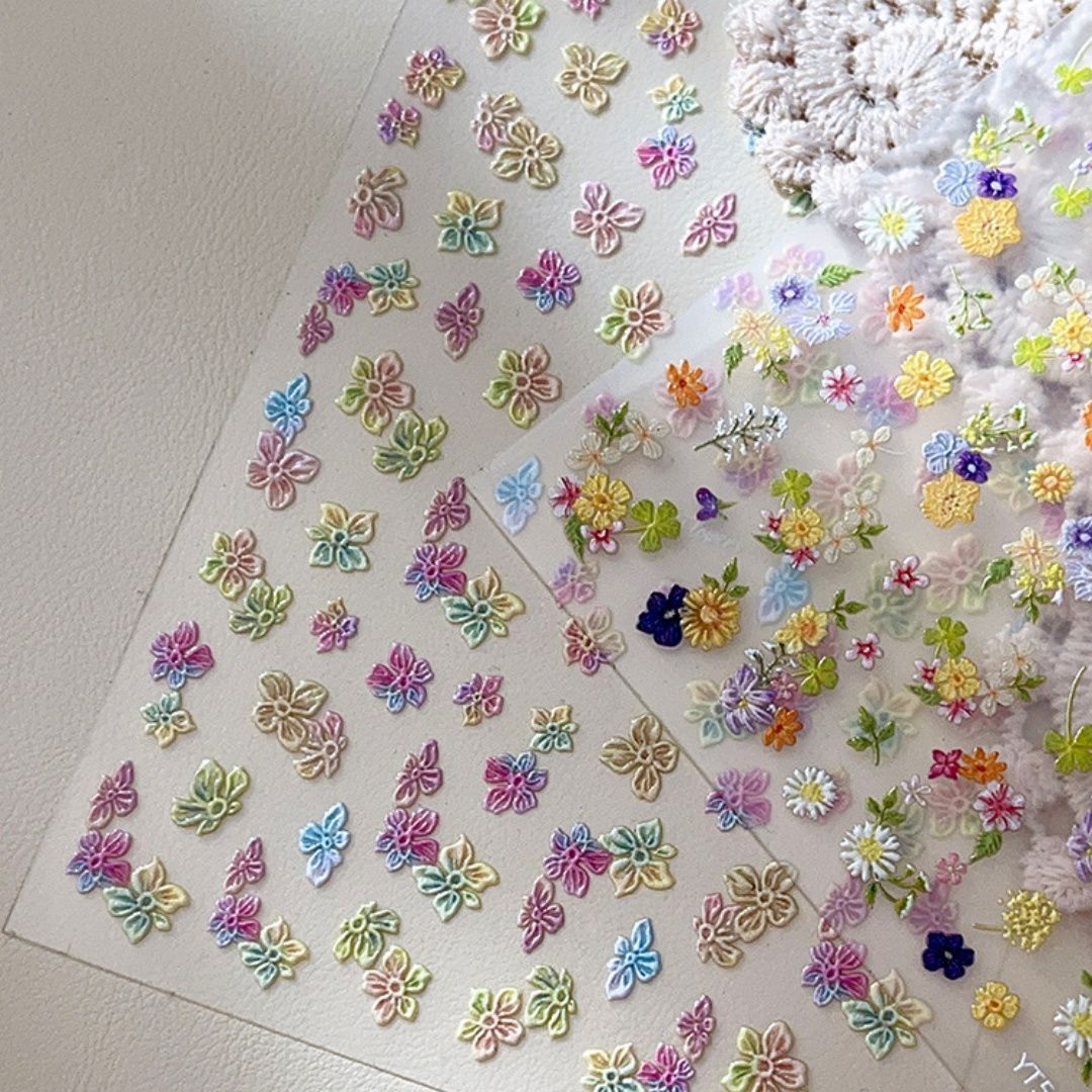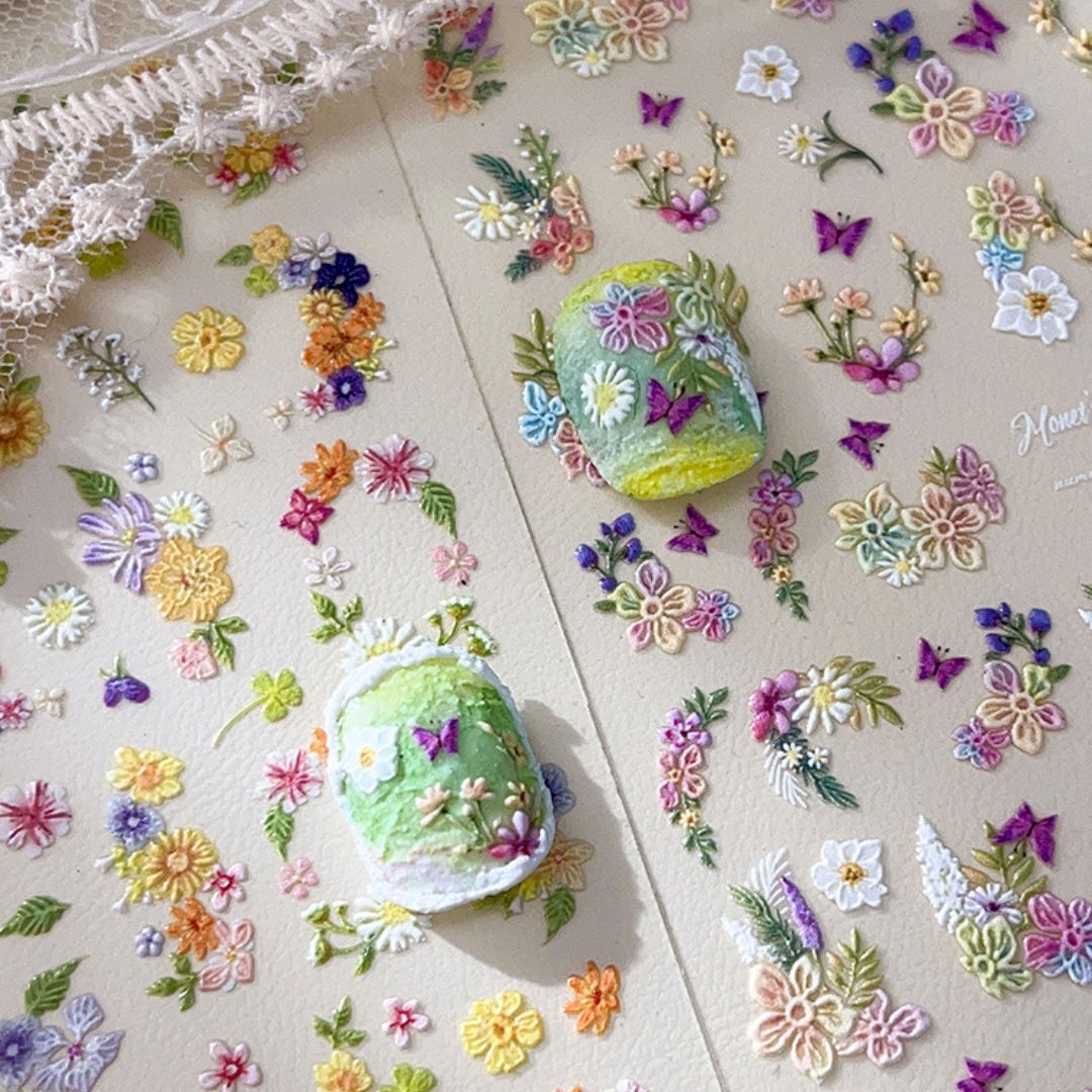 새로운 여름 유화 꽃 모네 정원 양각 네일 아트 스티커 3D 다채로운 귀여운 꽃 달콤한 장식 스티커