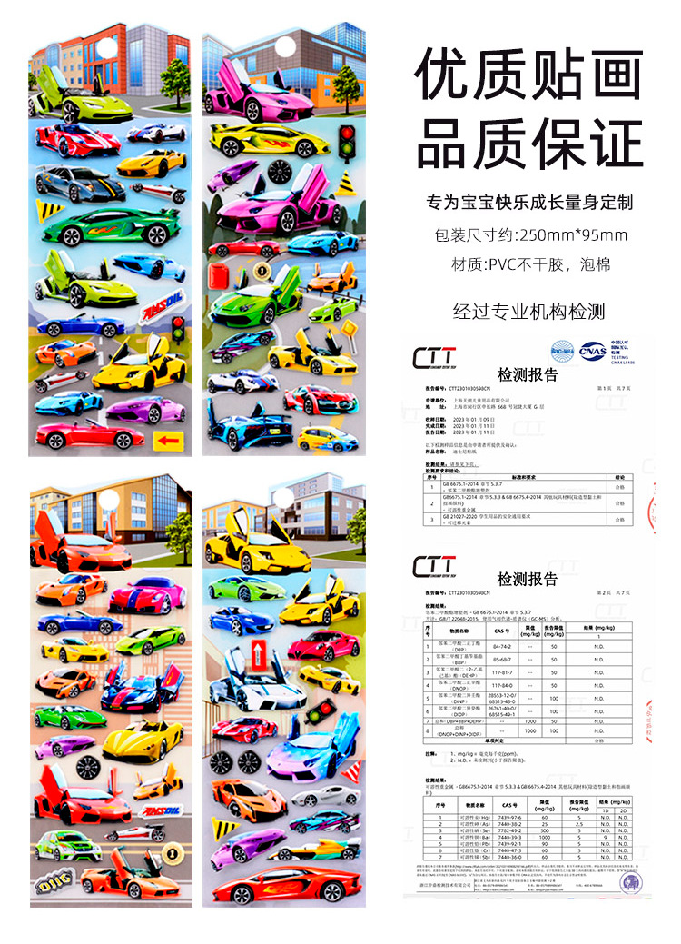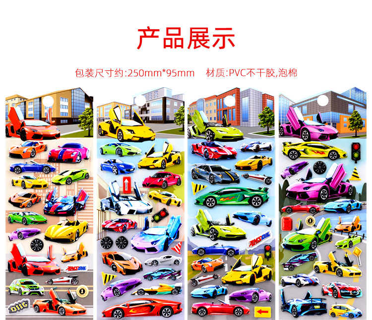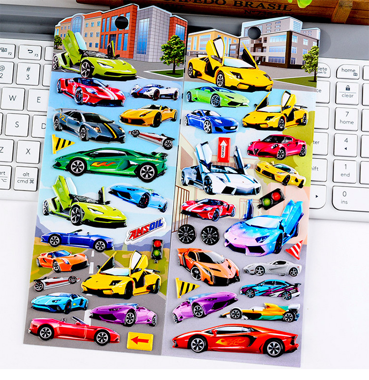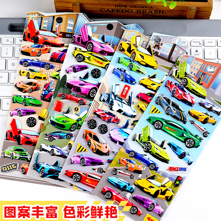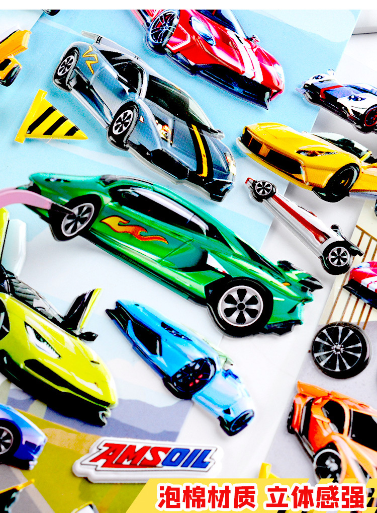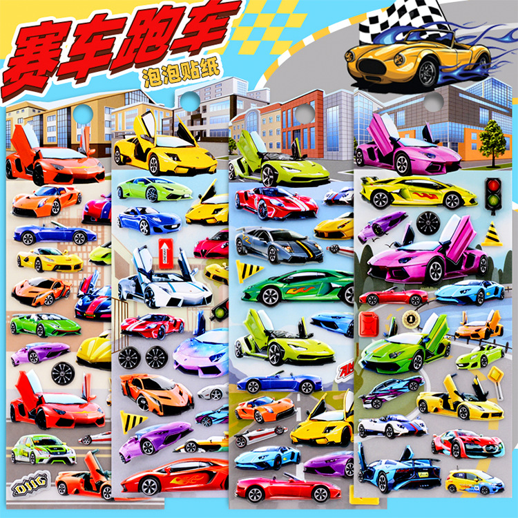 어린이, 소년 및 아기를위한 레이싱 스포츠카 3D 버블 스티커 보상 자동차 및 교통 수단 3 차원 스티커스토어 가기