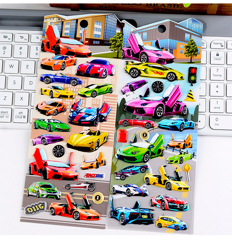 어린이, 소년 및 아기를위한 레이싱 스포츠카 3D 버블 스티커 보상 자동차 및 교통 수단 3 차원 스티커