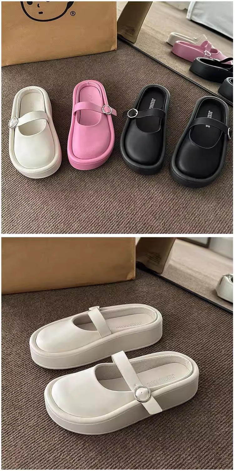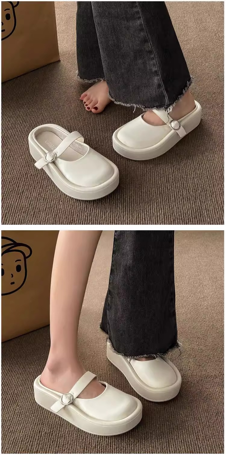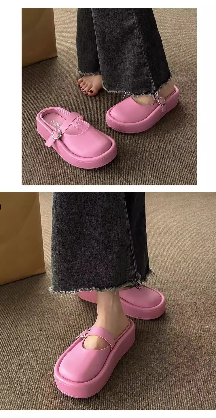 여성을위한 큰 머리 추악한 Baotou 하프 슬리퍼 2025 여름 새로운 게으른 힐리스 샌들 두꺼운 밑창 슬리퍼 대외 무역