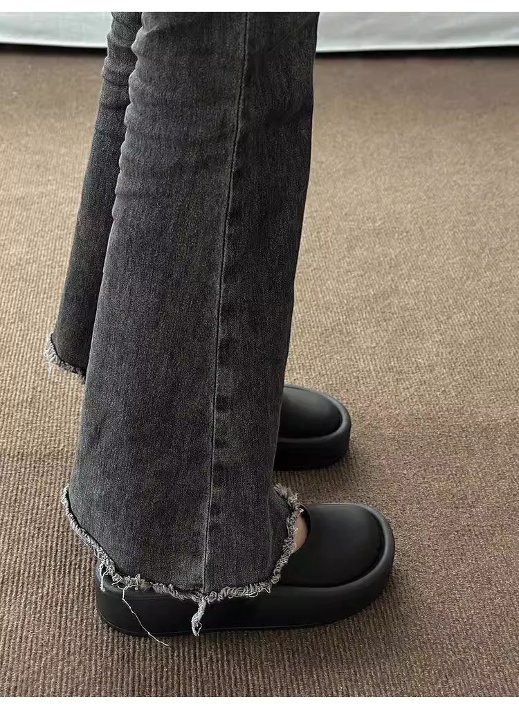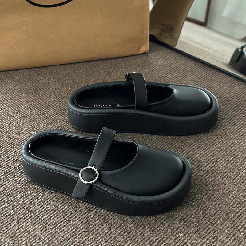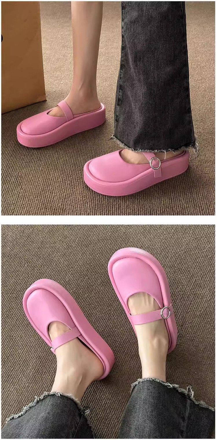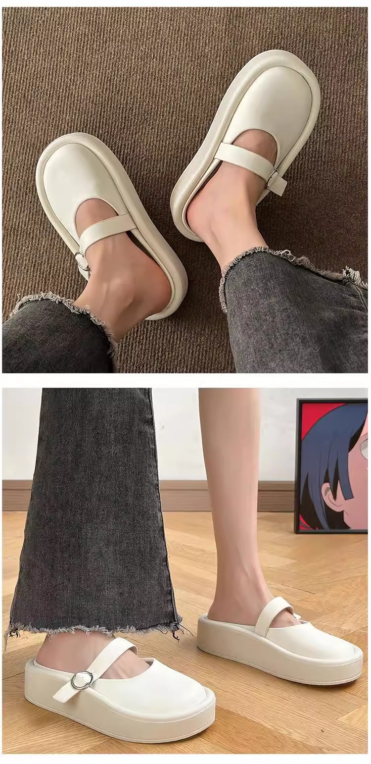 여성을위한 큰 머리 추악한 Baotou 하프 슬리퍼 2025 여름 새로운 게으른 힐리스 샌들 두꺼운 밑창 슬리퍼 대외 무역