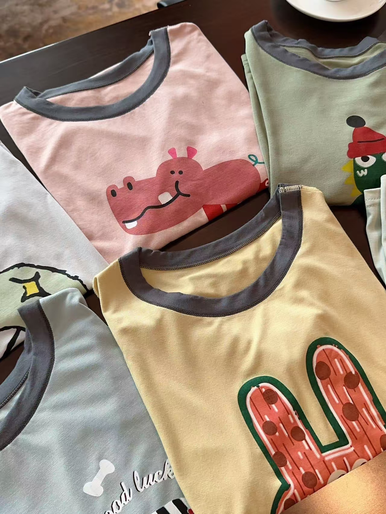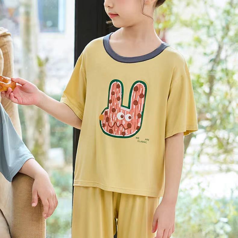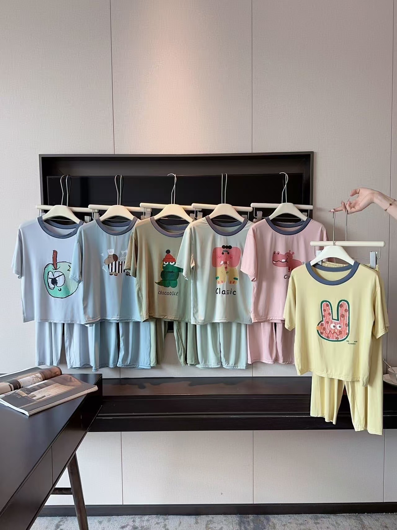 어린이 여름 가정 의류 세트 부모-자식 대형, 중형 및 소형 어린이 소년 소녀 리오셀 만화 잠옷 반팔 바지