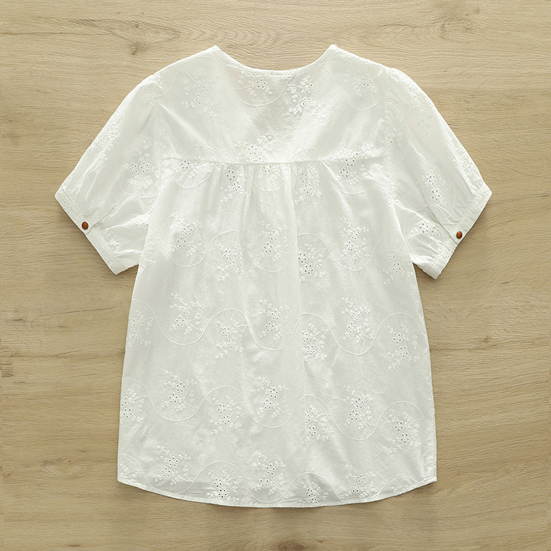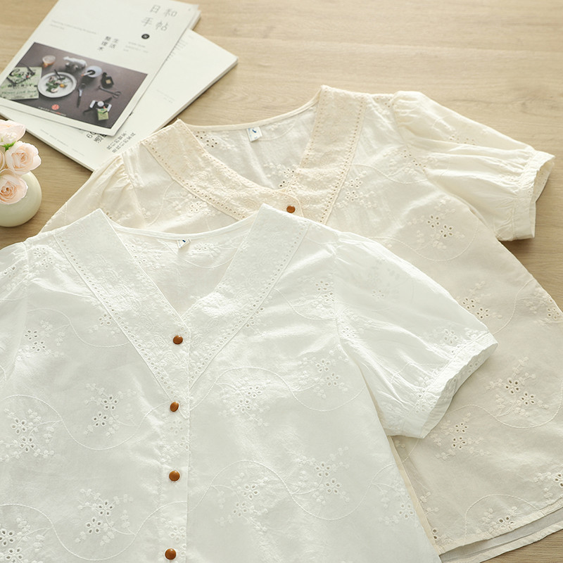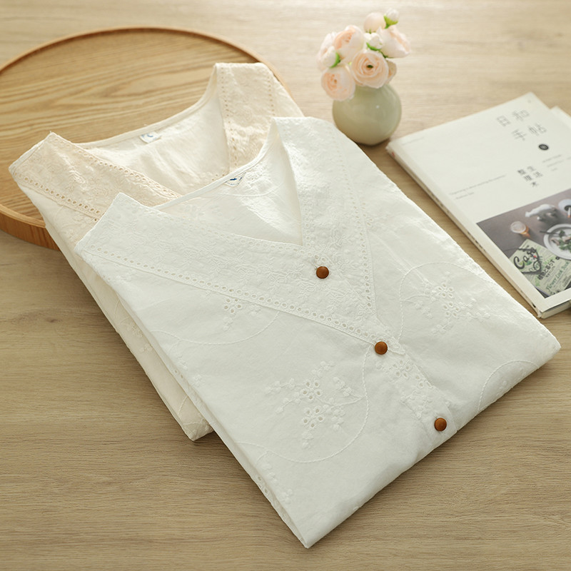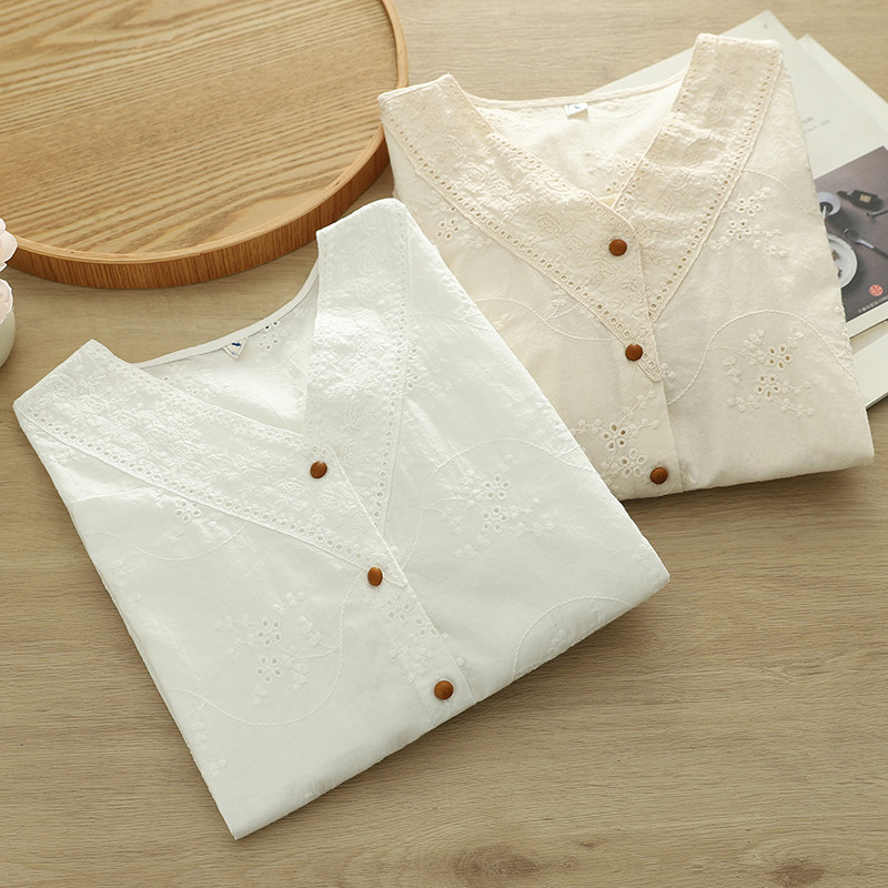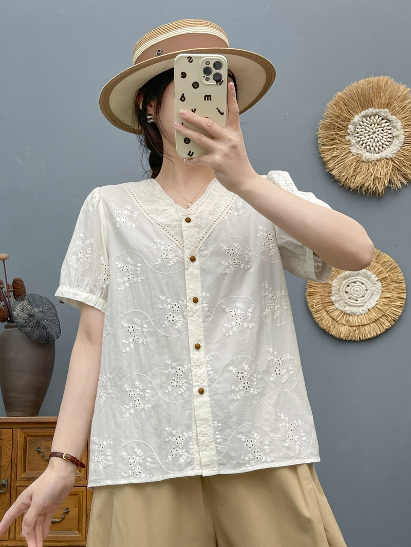 2025 여름 새로운 V 넥 자수 레이스 숙녀 카디건 반팔 셔츠 탑 도매스토어 가기