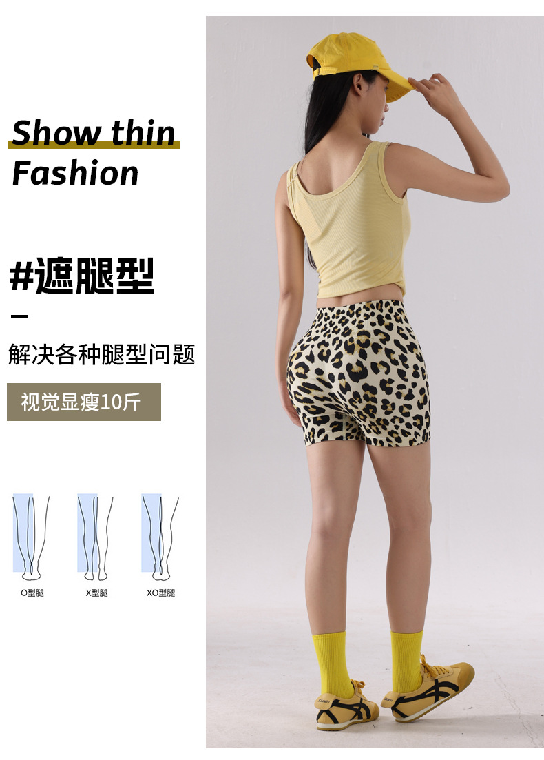 봄여름 레오파드 무봉제 요가 반바지 여성용 러닝 피트니스 팬츠 하이웨이스트 힙업 스포츠 레깅스 3부 팬츠 엉덩이를 감싸는 디자인