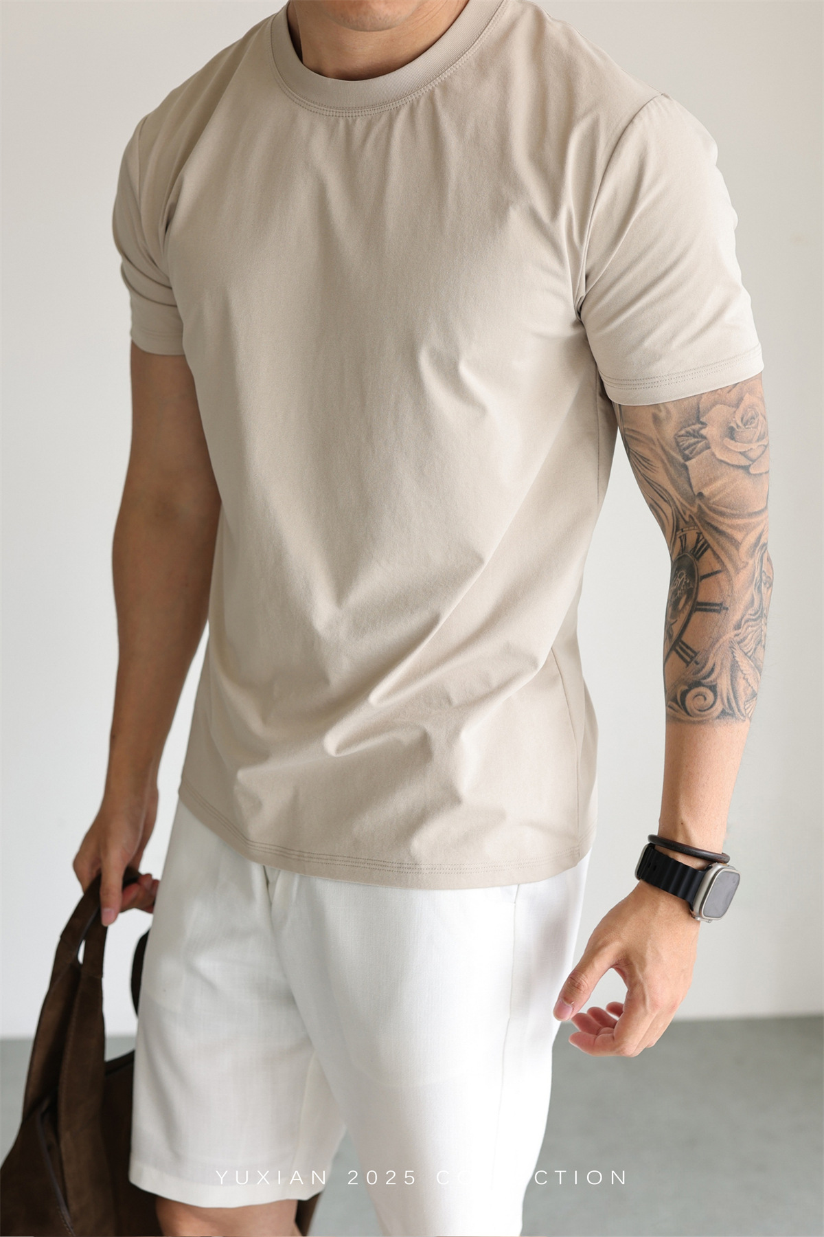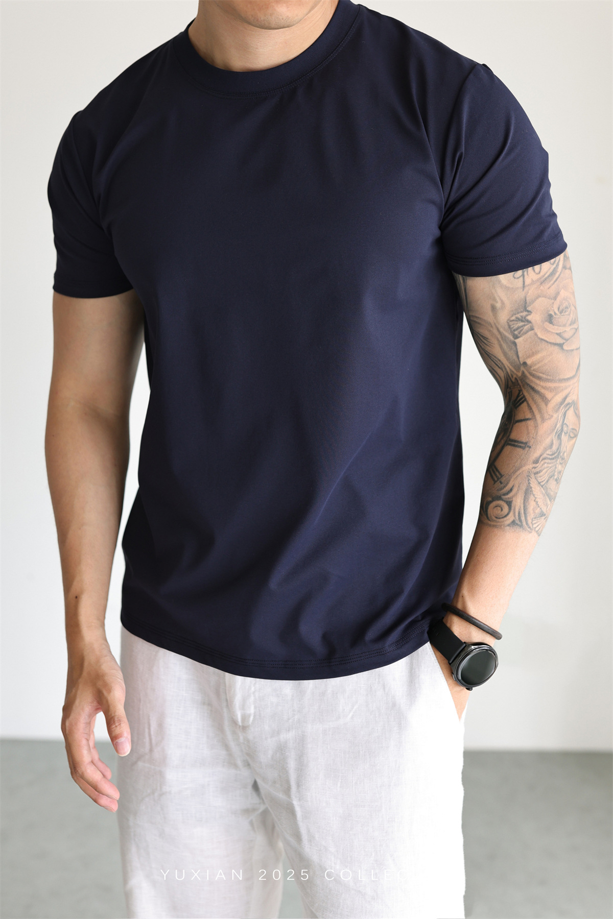 남성용 속건성 티셔츠 반팔 아이스 센스 7a 항균 자외선 차단제 통기성 스포츠 탑 솔리드 컬러 바닥 셔츠 여름 반팔
