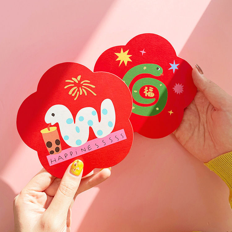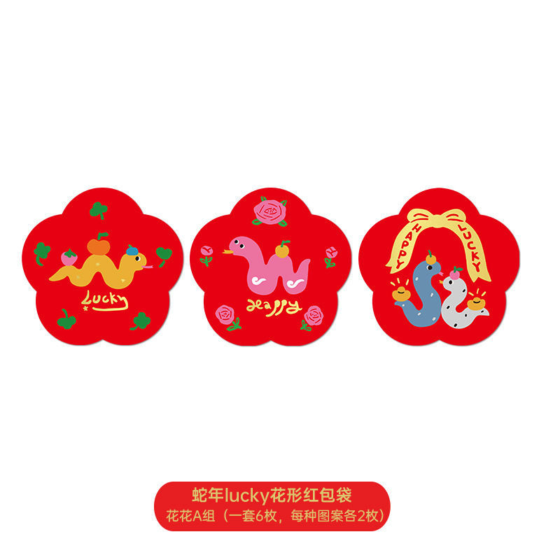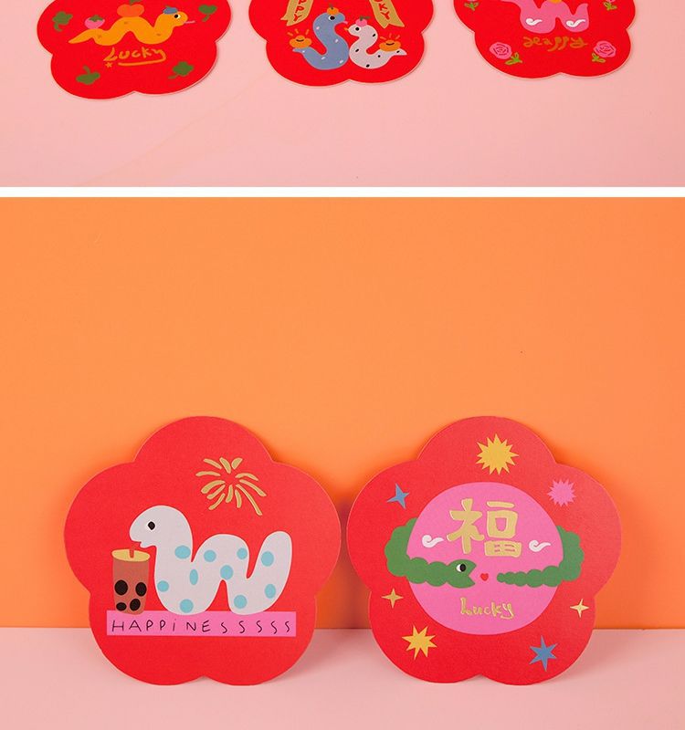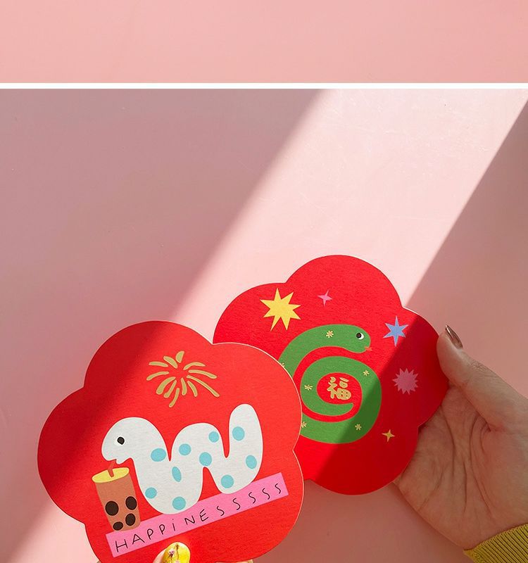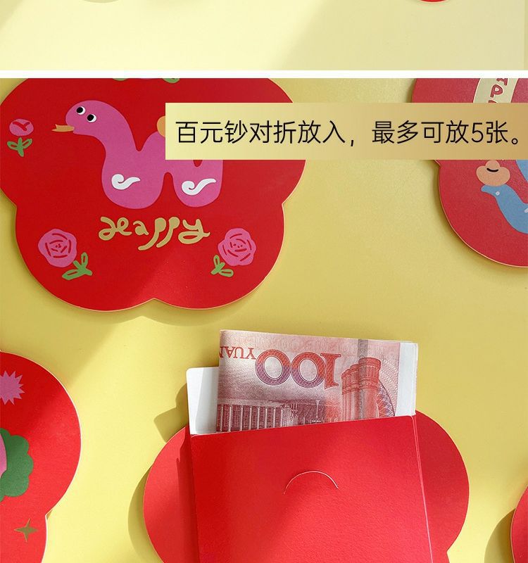 뱀의 해 행운의 꽃 어린이 빨간 봉투 2025 새해 창조적 인 만화 귀여운 꽃 100 위안 선물 가방 빨간 봉투스토어 가기