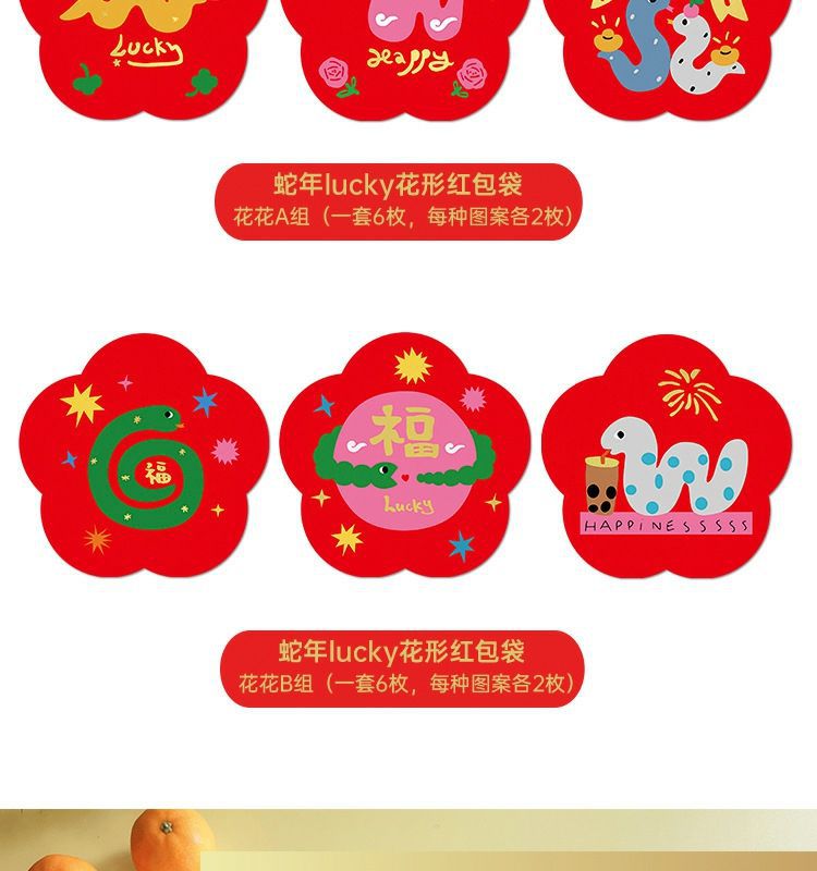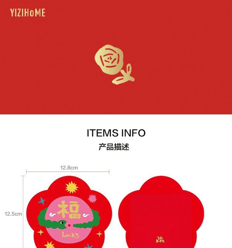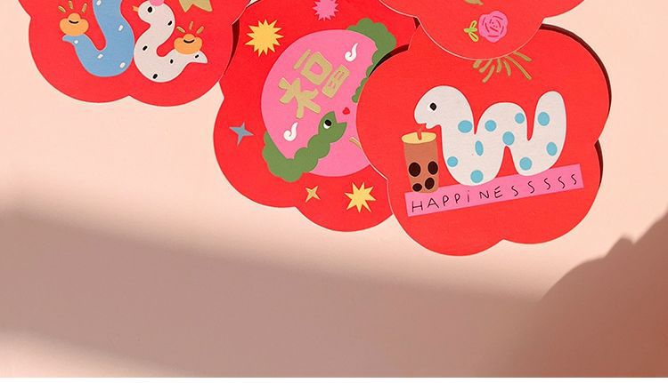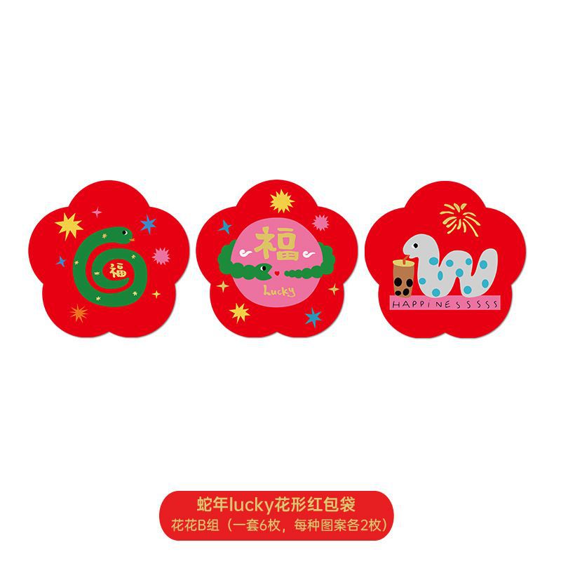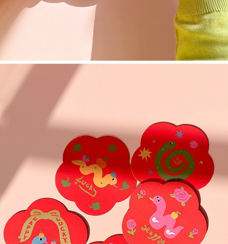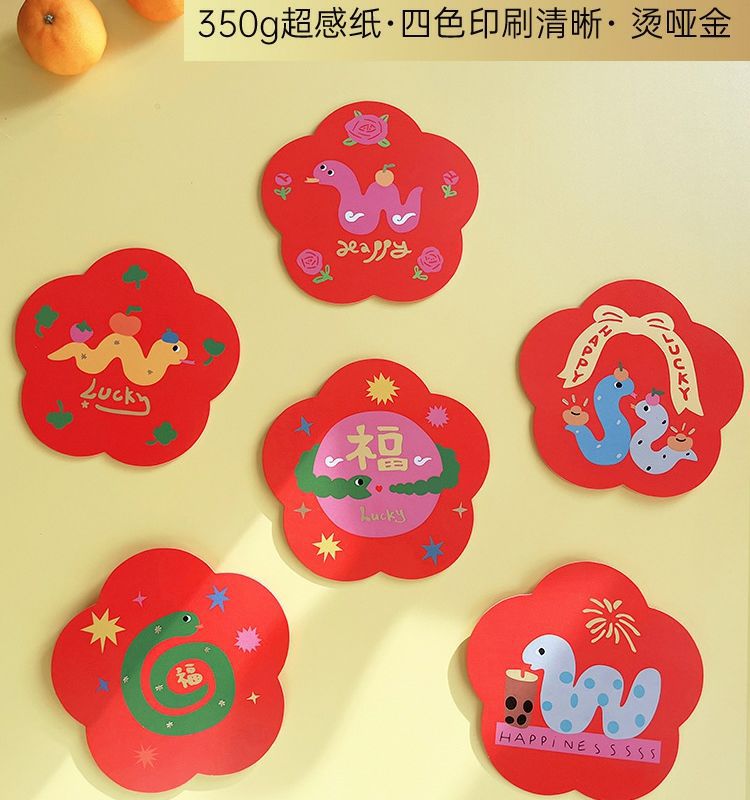 뱀의 해 행운의 꽃 어린이 빨간 봉투 2025 새해 창조적 인 만화 귀여운 꽃 100 위안 선물 가방 빨간 봉투스토어 가기