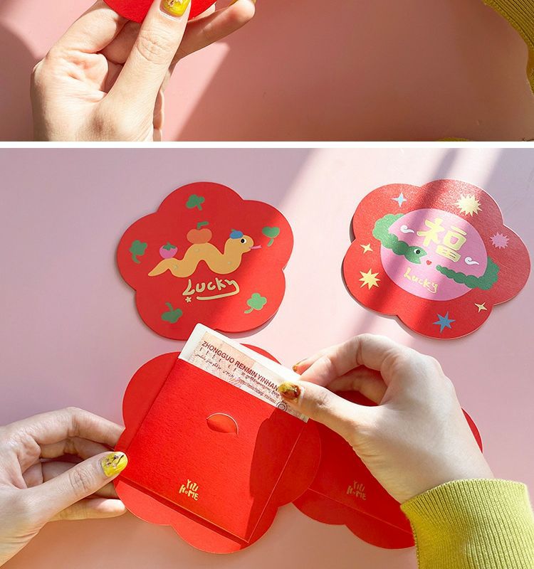 뱀의 해 행운의 꽃 어린이 빨간 봉투 2025 새해 창조적 인 만화 귀여운 꽃 100 위안 선물 가방 빨간 봉투