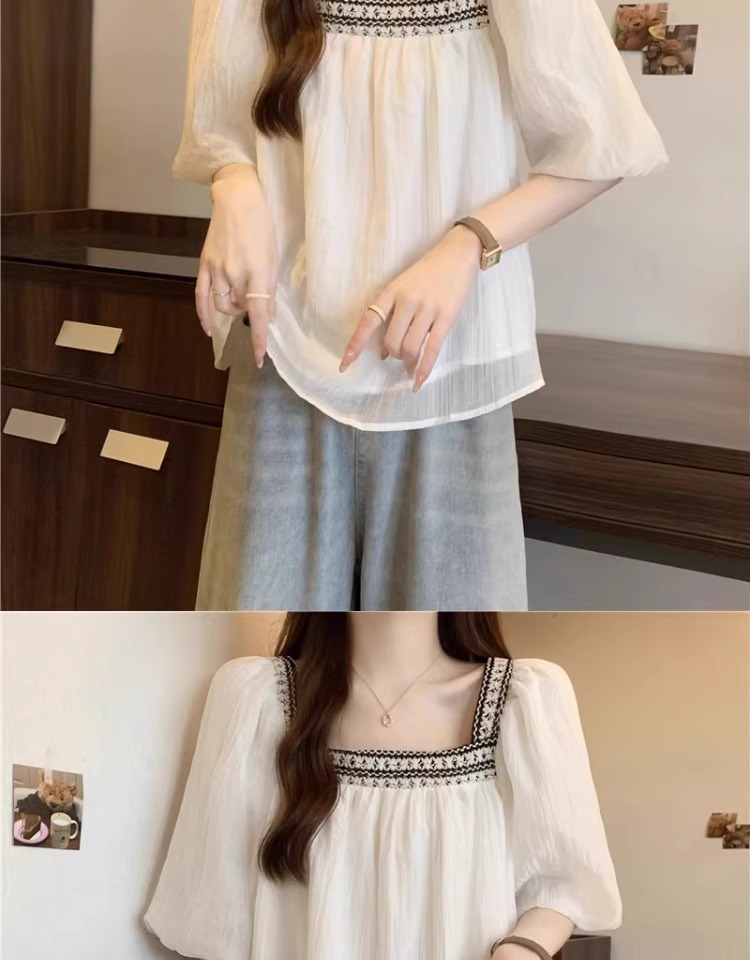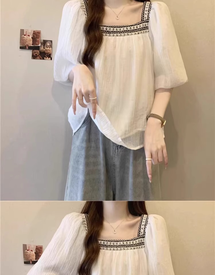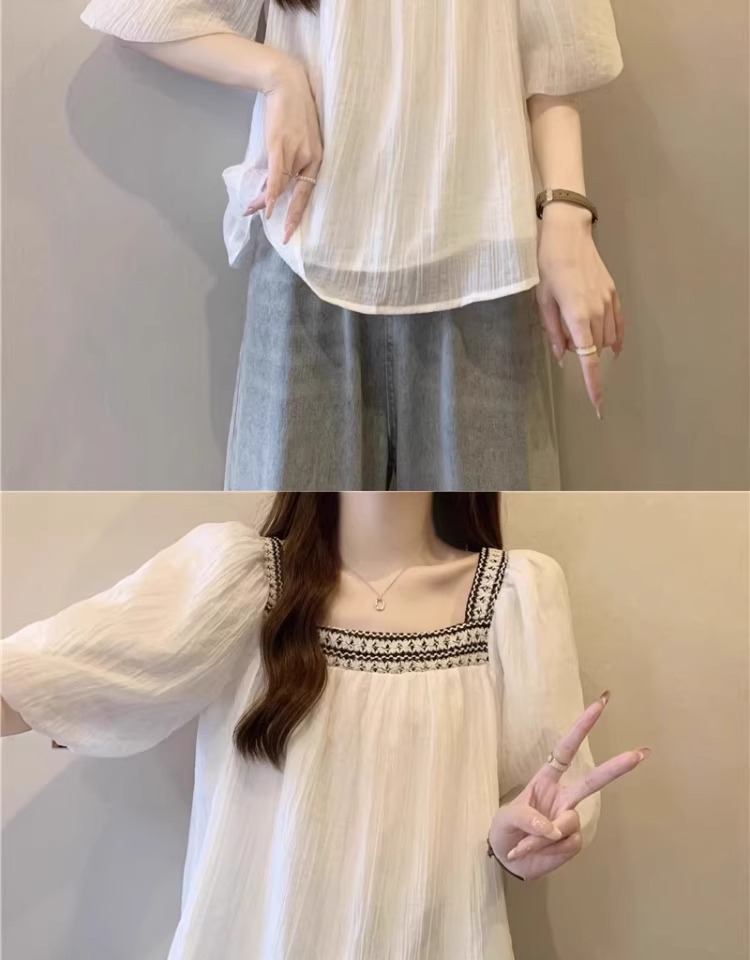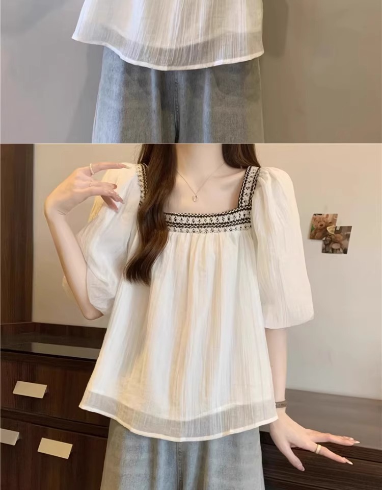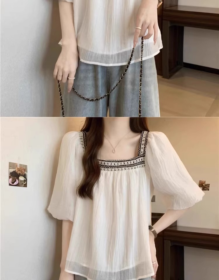 플러스 사이즈 프렌치 퍼프 슬리브 쉬폰 짧은 소매 셔츠 여성용 여름 통통녀 벨리 커버 슬리밍 인형 셔츠 탑 A3825