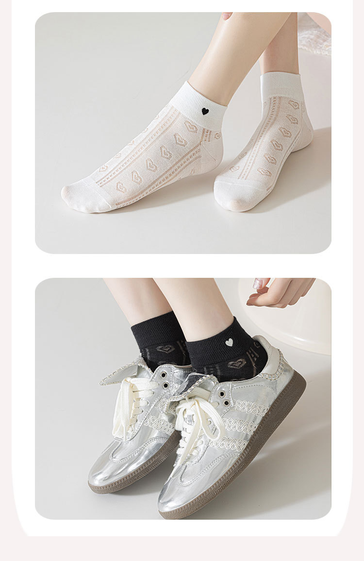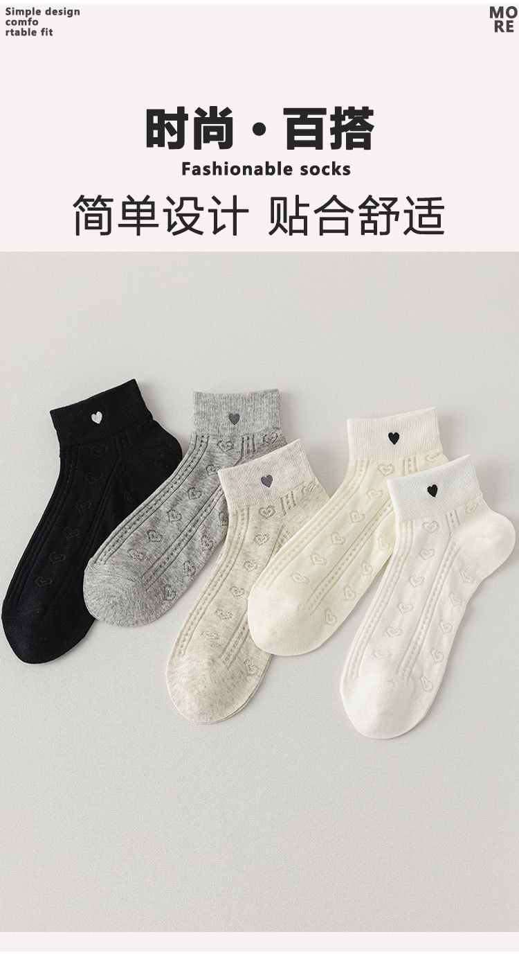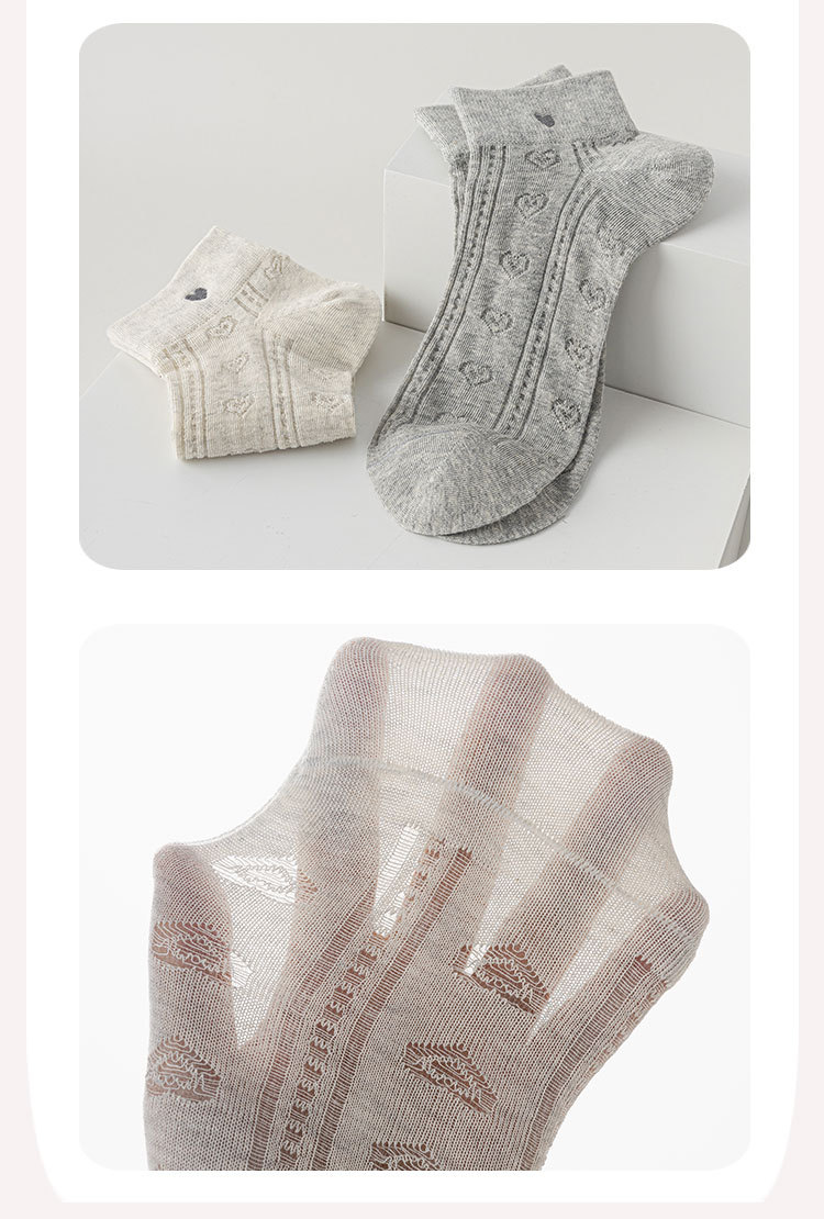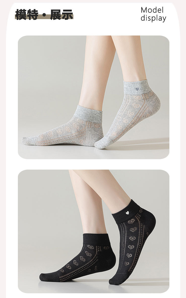 양말 여성 봄 여름 얇은면 양말 땀 흡수 통기성 뼈없는 양말 여름 메쉬 사랑 자수 짧은 양말
